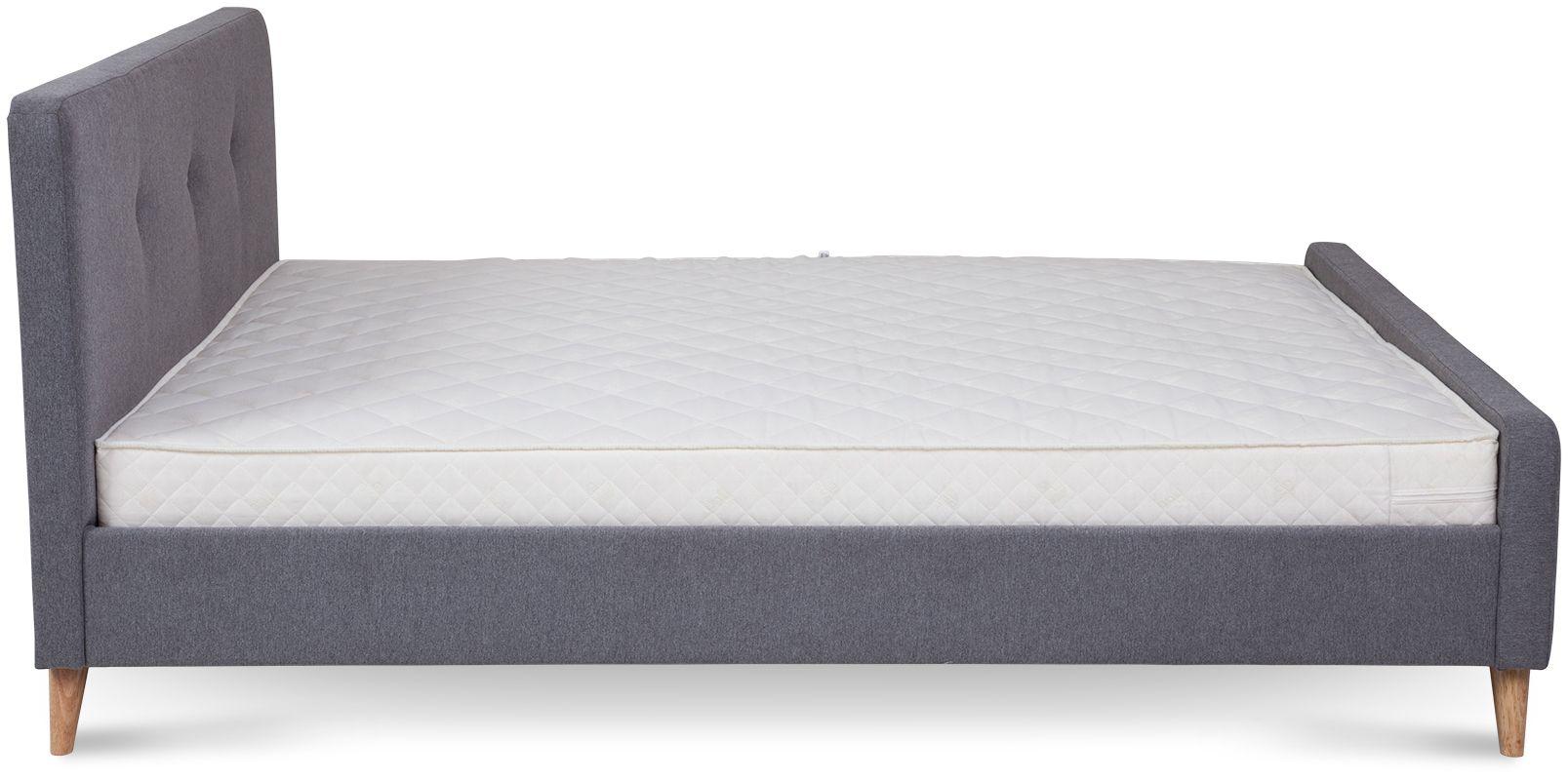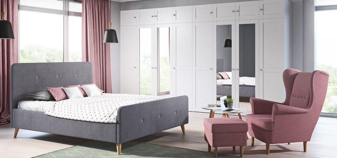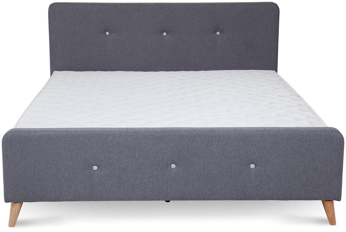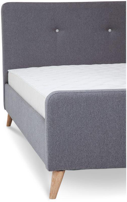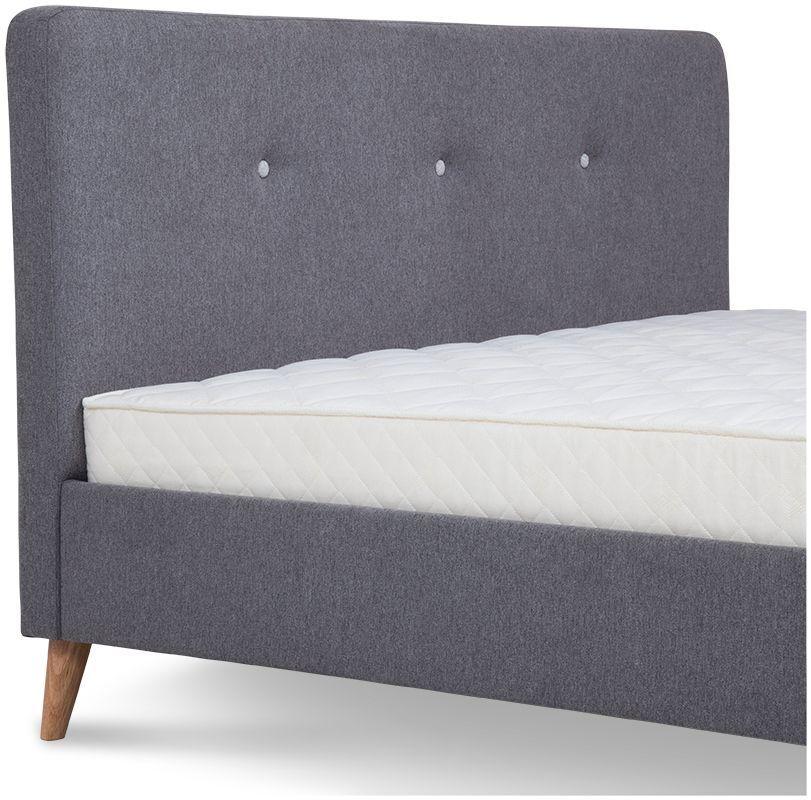 - łóżko tapicerowane tkaniną w kolorze szarym