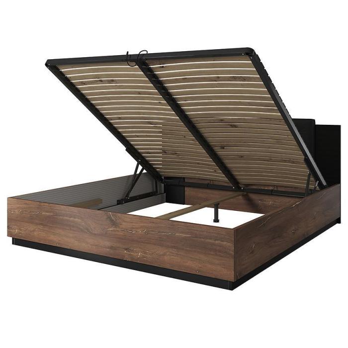 Łóżko to jeden z podstawowych elementów wyposażenia sypialni. Wytrzymały i solidny moduł posiada ciekawą konstrukcje i idealnie wpisze się w styl nowoczesny. Ze względu na wybarwienie będzie pasować do współczesnych i śmiałych aranżacji. Ozdobny, częściowo tapicerowany zagłówek nada wnętrzu oryginalnego wyglądu.