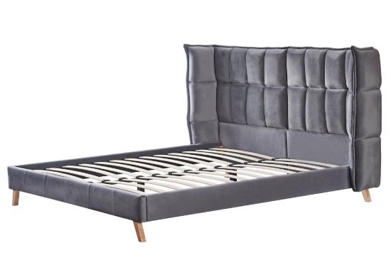Miękki velvet na powierzchni łóżka dodaje mu elegancji i subtelnej przytulności. Kolor popielaty jest niezwykle uniwersalny, doskonale wpasowując się w różnorodne aranżacje wnętrz. To łóżko doskonale sprawdzi się zarówno w nowoczesnych, jak i klasycznych sypialniach.
