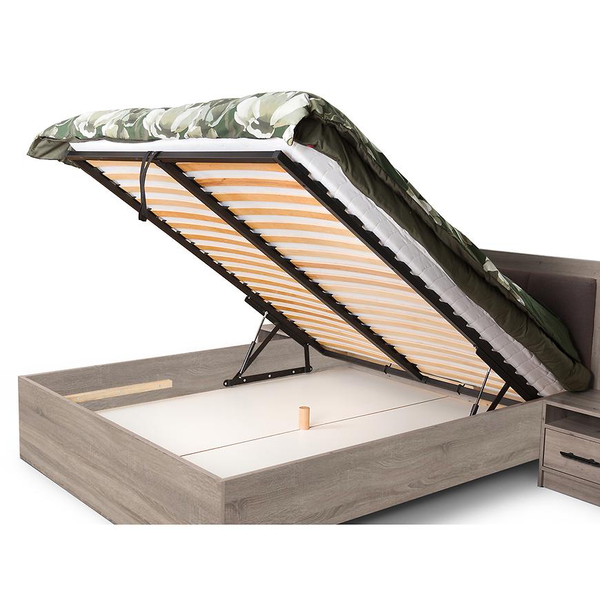 Jednym z największych atutów tego łóżka jest praktyczny schowek na pościel. Dzięki przestronnemu pojemnikowi umieszczonemu pod ramą łóżka, użytkownicy mogą z łatwością przechowywać kołdry, poduszki lub inne tekstylia, co pozwala na optymalne zagospodarowanie przestrzeni w sypialni i utrzymanie porządku. To funkcjonalne rozwiązanie sprawia, że łóżko nie tylko pełni rolę estetycznego elementu wyposażenia wnętrza, ale także spełnia praktyczne potrzeby codziennego użytkowania.