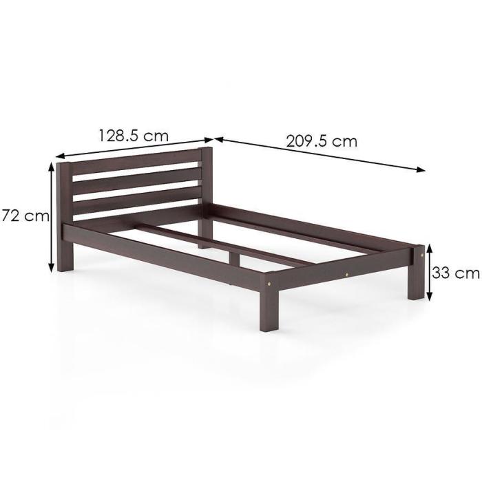 Mebel został stworzony z wysokiej jakości materiałów. Łóżko jest wykonane z drewna o ciemnym wybarwieniu z wykończeniem matowym, dzięki czemu będzie doskonałym uzupełnieniem aranżacji wnętrz, nadając mu niepowtarzalnego wyglądu.
