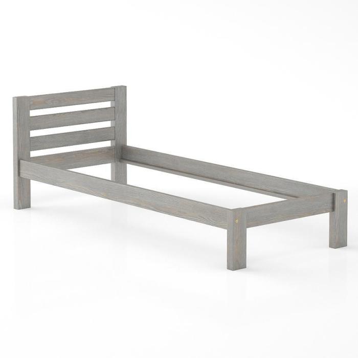 Łóżko Sosna wykonane jest z drewna o wybarwieniu szarym. Idealnie wkomponuje się do aranżacji klasycznych i minimalistycznych ze względu na prostą konstrukcję.
