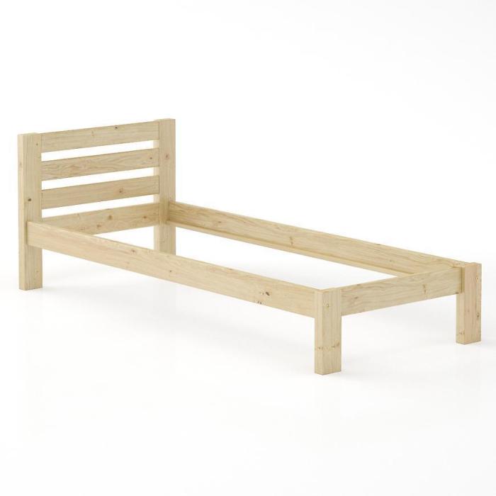 Łóżko Sosna wykonane jest z surowego drewna. Idealnie wkomponuje się do aranżacji klasycznych i minimalistycznych ze względu na prostą konstrukcję.