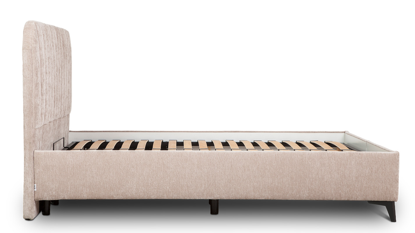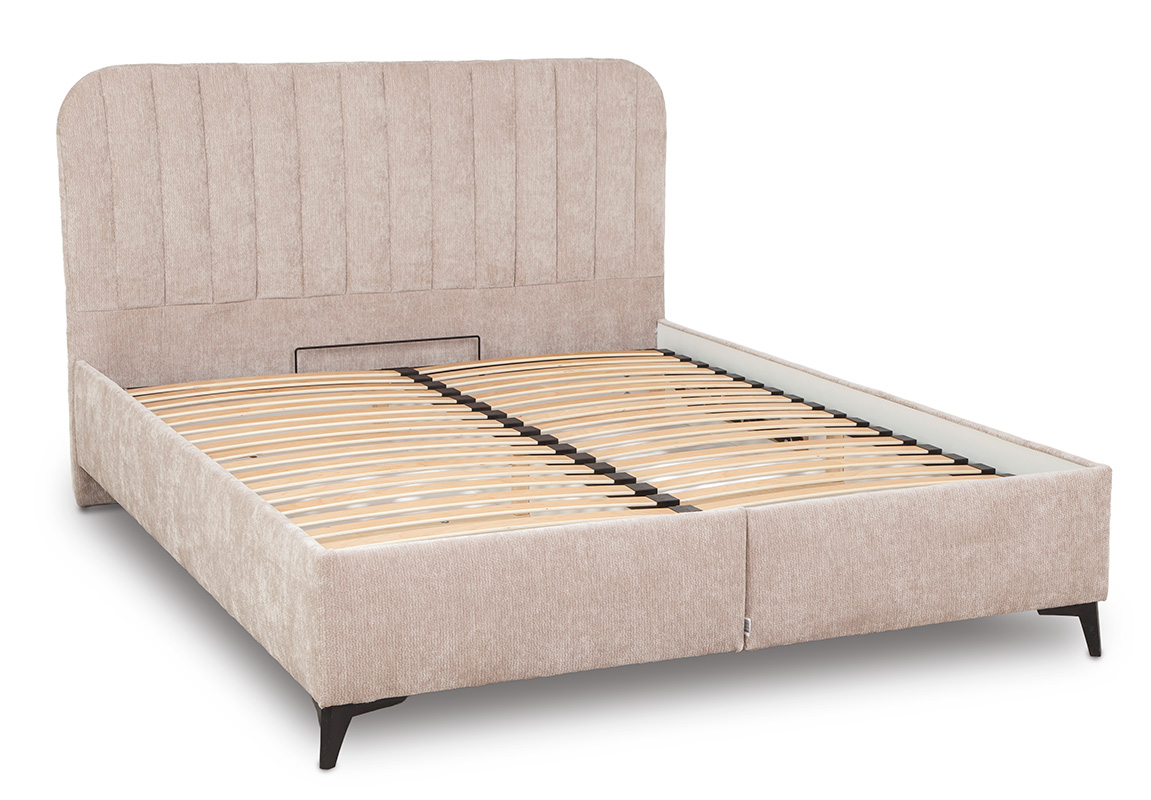 Konstrukcja łóżka oparta jest na wytrzymałej metalowej ramie, co zwiększa jej odporność na odkształcenia i skrzypienie. Stelaż wyposażono w 36 elastycznych listew z drewna gięto-klejonego. Taka liczba punktów podparcia przekłada się na równomierne rozłożenie ciężaru oraz lepszą współpracę z materacem.