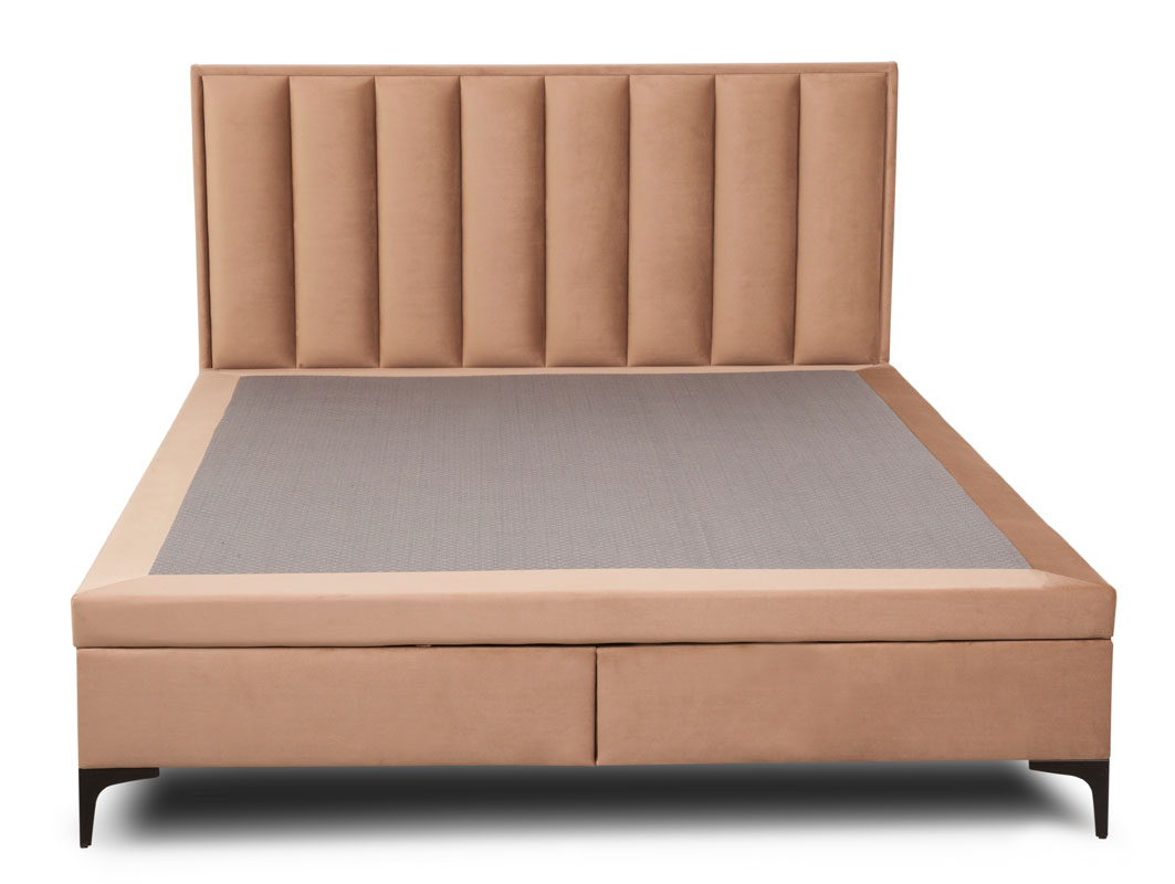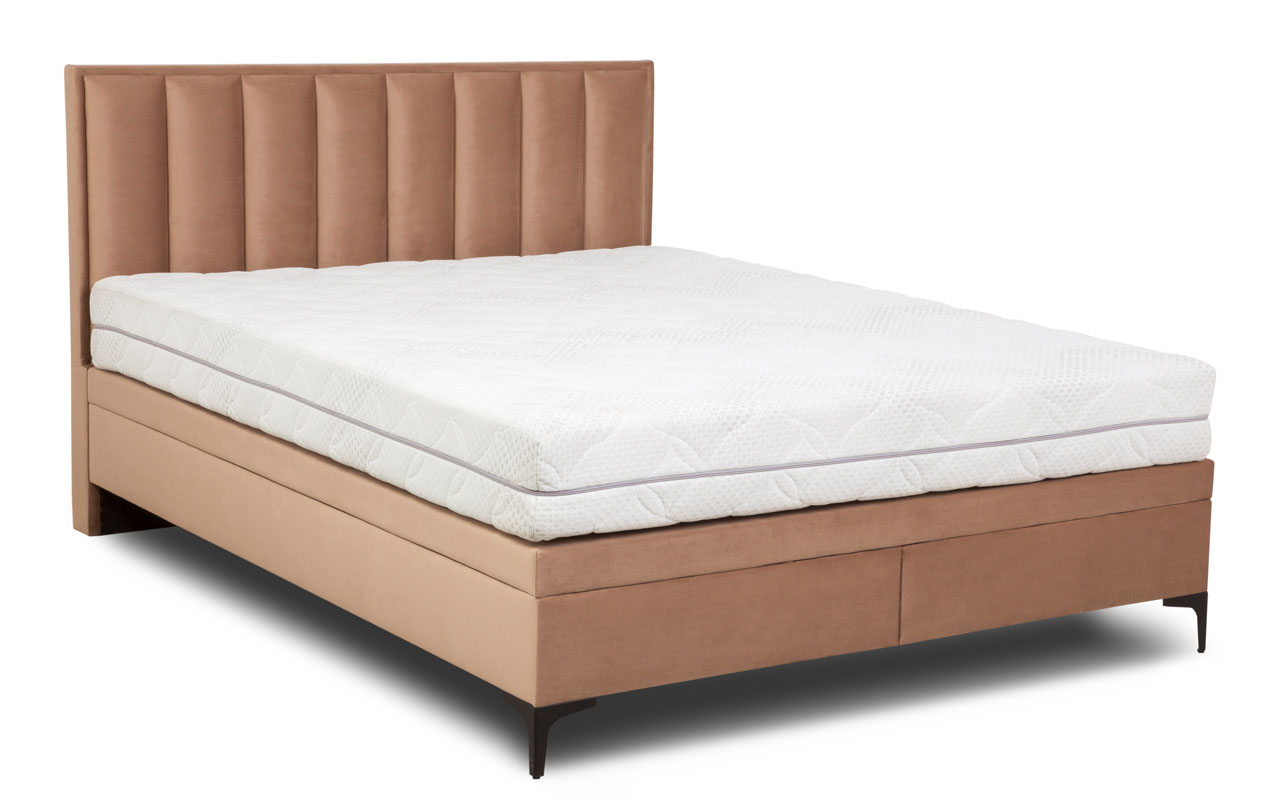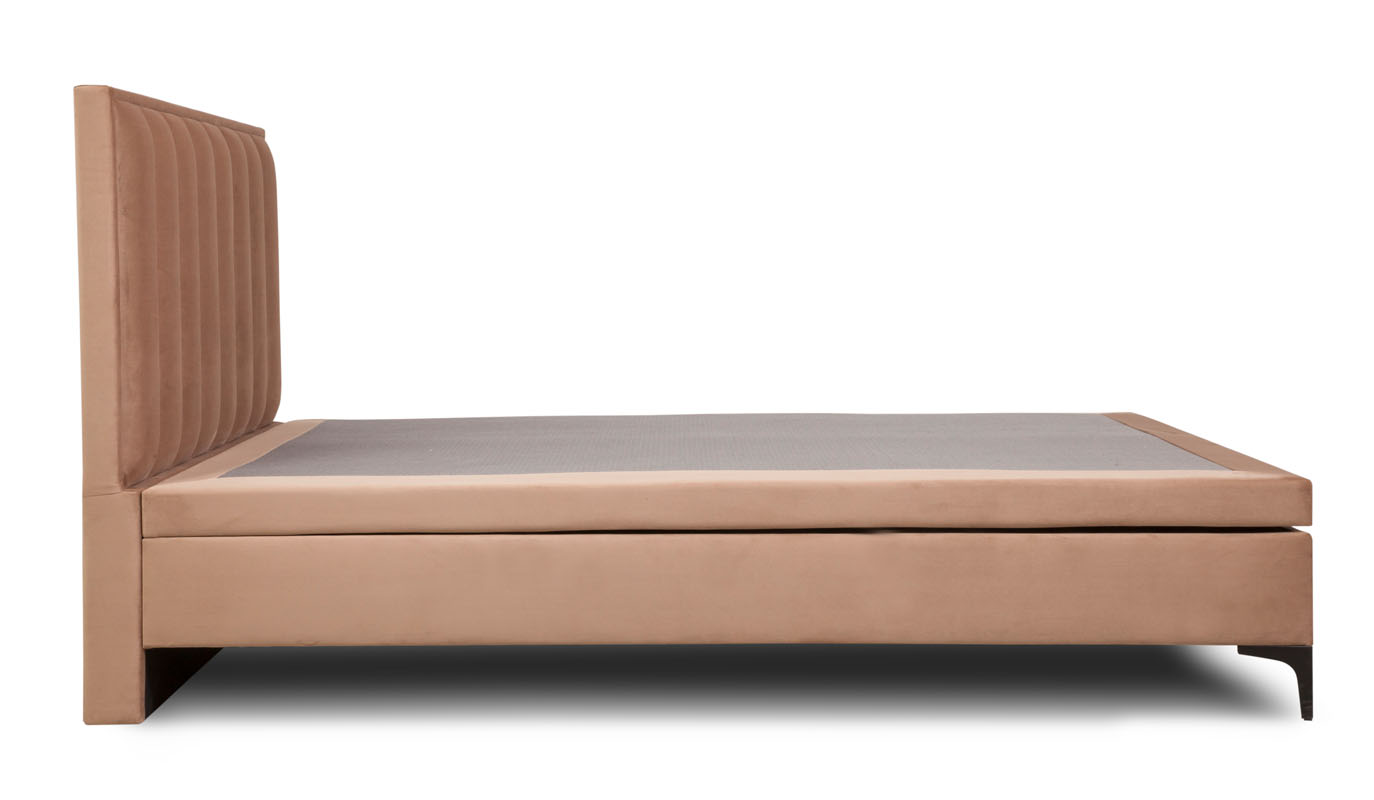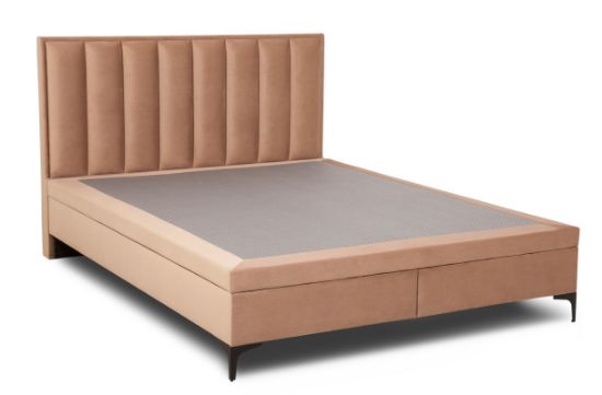 Tkanina Bluvel 28, w której zostało obite łóżko, to wysokiej jakości velvet o beżowym kolorze. Charakteryzuje się doskonałą odpornością na ścieranie i mechacenie, co sprawia, że łóżko zachowuje swoje piękno na długi czas. Dłuższy włos tkaniny Bluvel sprawia, że mieni się i połyskuje, nadając sypialni luksusowy wygląd.