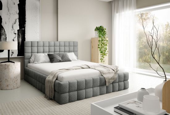 Łóżko tapicerowane Dopio 140x200 w tkaninie CORAL 75 w jasnoszarym kolorze to stylowa i komfortowa propozycja do sypialni. Miękka tapicerka Coral 75 w delikatnym jasnoszarym odcieniu nadaje wnętrzu spokojny, nowoczesny i przytulny charakter, idealnie wpisując się w różnorodne aranżacje sypialni.