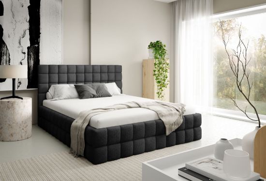 Łóżko tapicerowane Dopio 160x200 w tkaninie CORAL 60 w grafitowym kolorze to stylowa i komfortowa propozycja do sypialni. Miękka tapicerka Coral 60 w głębokim grafitowym odcieniu nadaje wnętrzu nowoczesny, elegancki i przytulny charakter, doskonale komponując się z minimalistycznymi i klasycznymi aranżacjami sypialni.