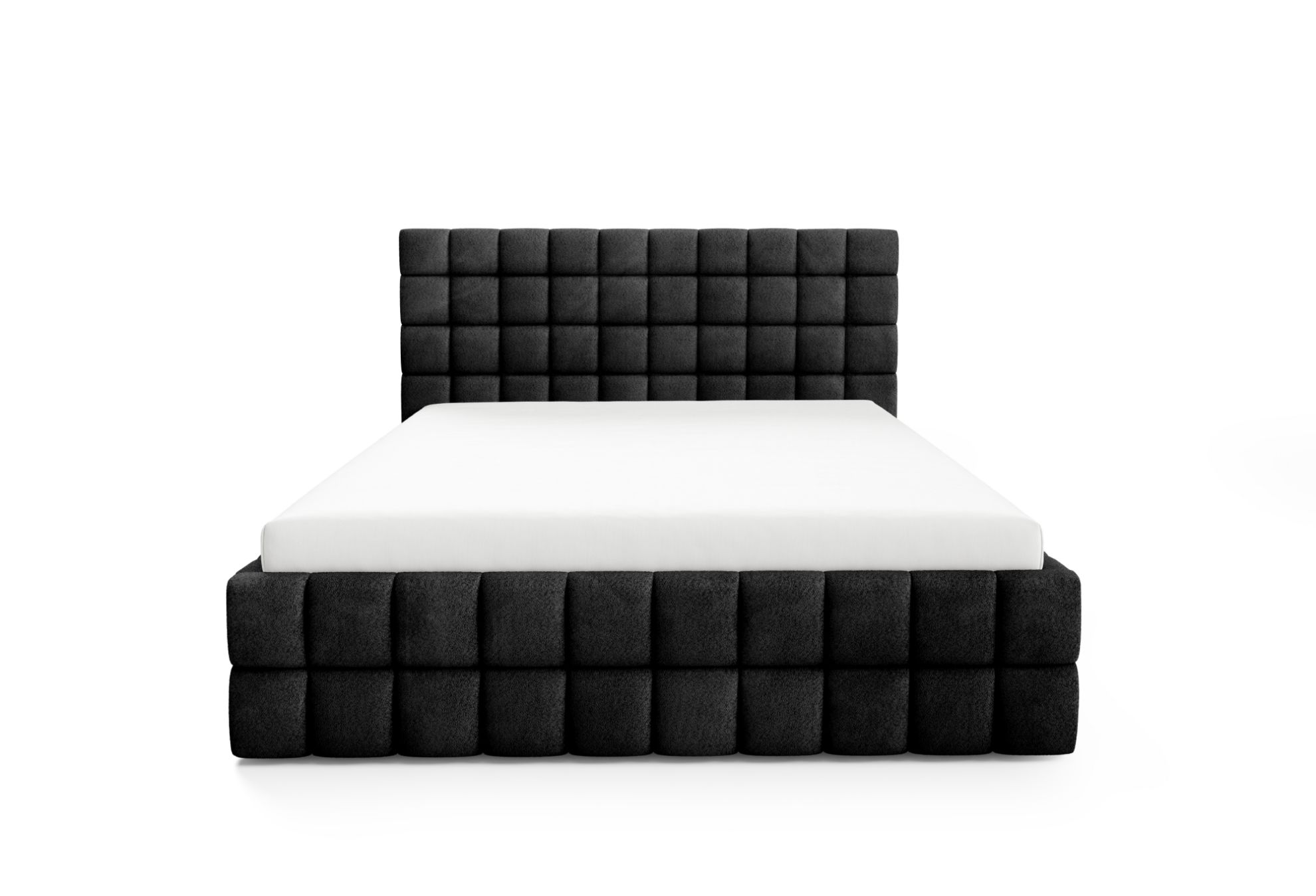 Łóżko nie posiada nóg, co nadaje mu elegancki, minimalistyczny wygląd, a ozdobne przeszycia w tapicerce podkreślają jego stylowy design. To połączenie komfortu, funkcjonalności i elegancji, dzięki któremu sypialnia staje się miejscem przytulnym, harmonijnym i spokojnym.