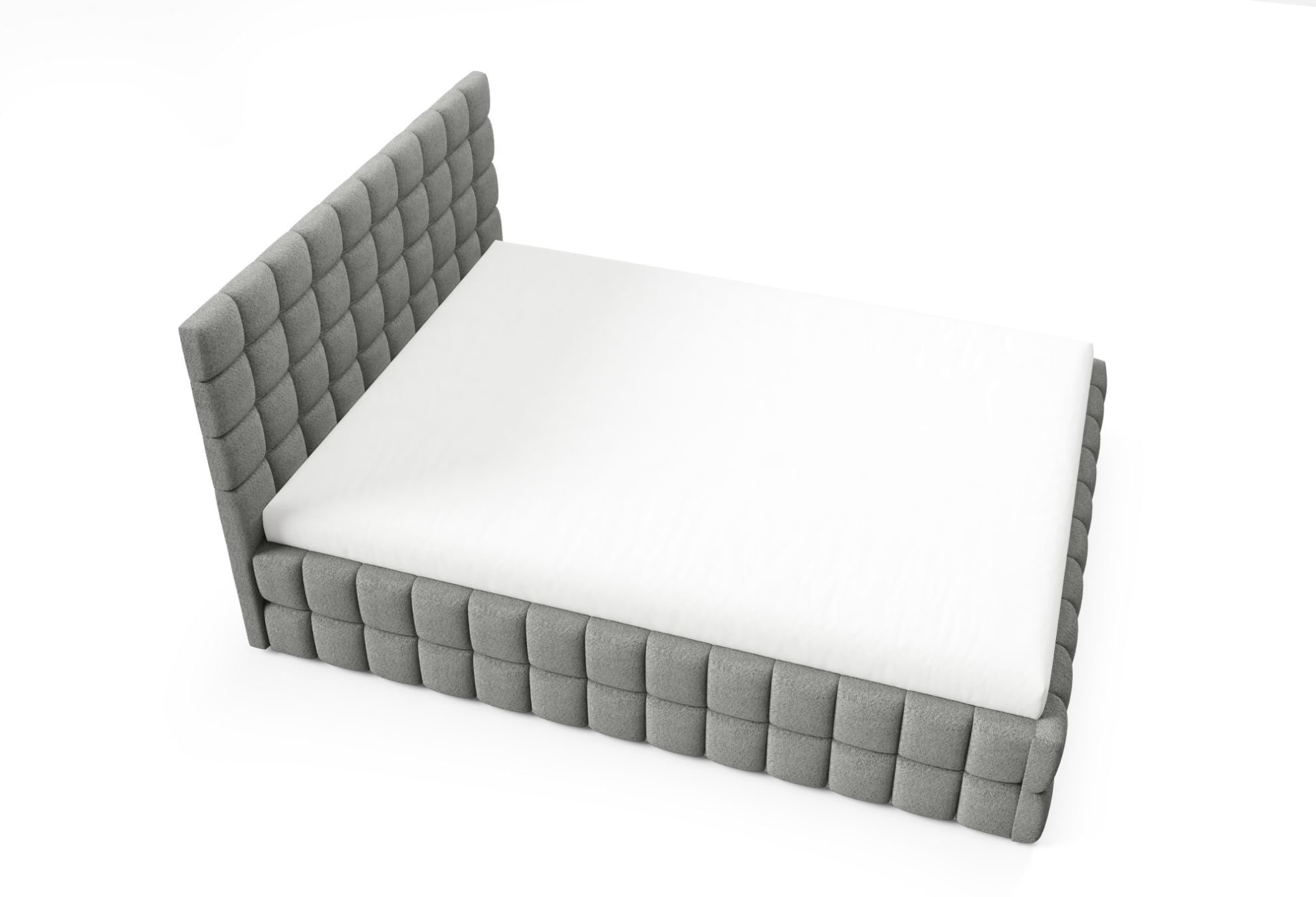 Łóżko nie posiada nóg, co nadaje mu minimalistyczny i elegancki wygląd, a ozdobne przeszycia w tapicerce podkreślają jego stylowy design. To połączenie komfortu, funkcjonalności i elegancji, dzięki któremu sypialnia staje się miejscem przytulnym, harmonijnym i spokojnym.