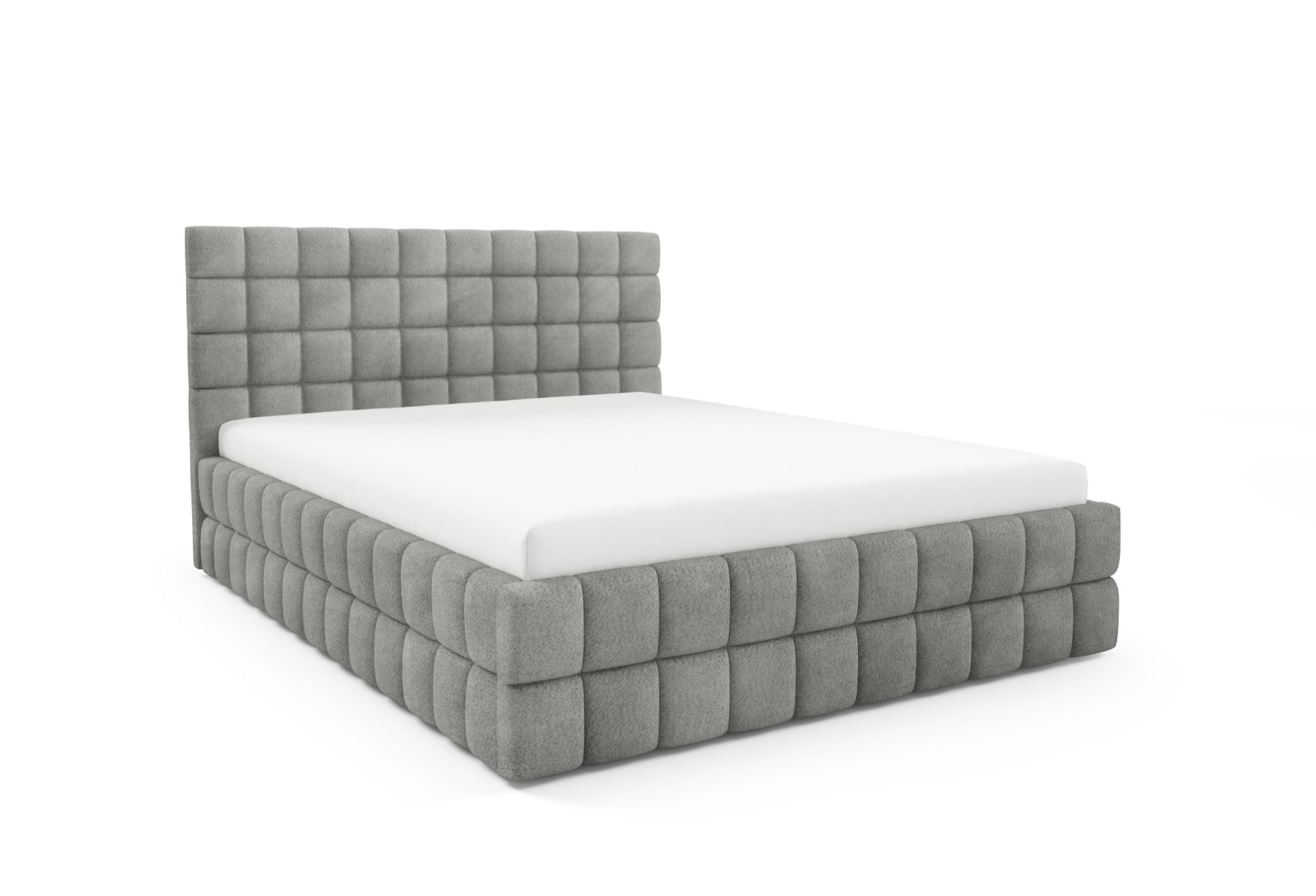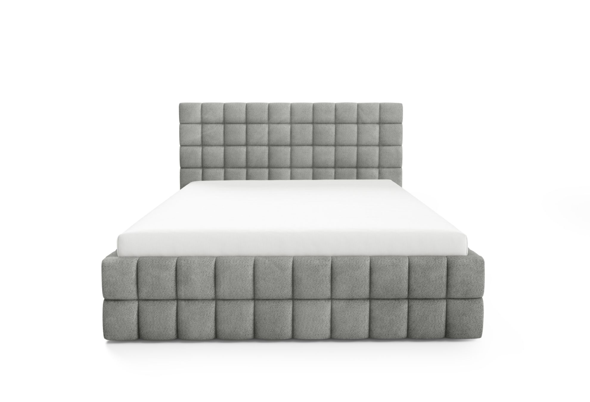 Łóżko nie posiada nóg, co podkreśla jego minimalistyczną i nowoczesną formę, a ozdobne przeszycia dodają całości elegancji oraz starannego wykończenia. To harmonijne połączenie komfortu, funkcjonalności i stylowego designu, dzięki któremu sypialnia staje się przytulnym i estetycznym miejscem wypoczynku.