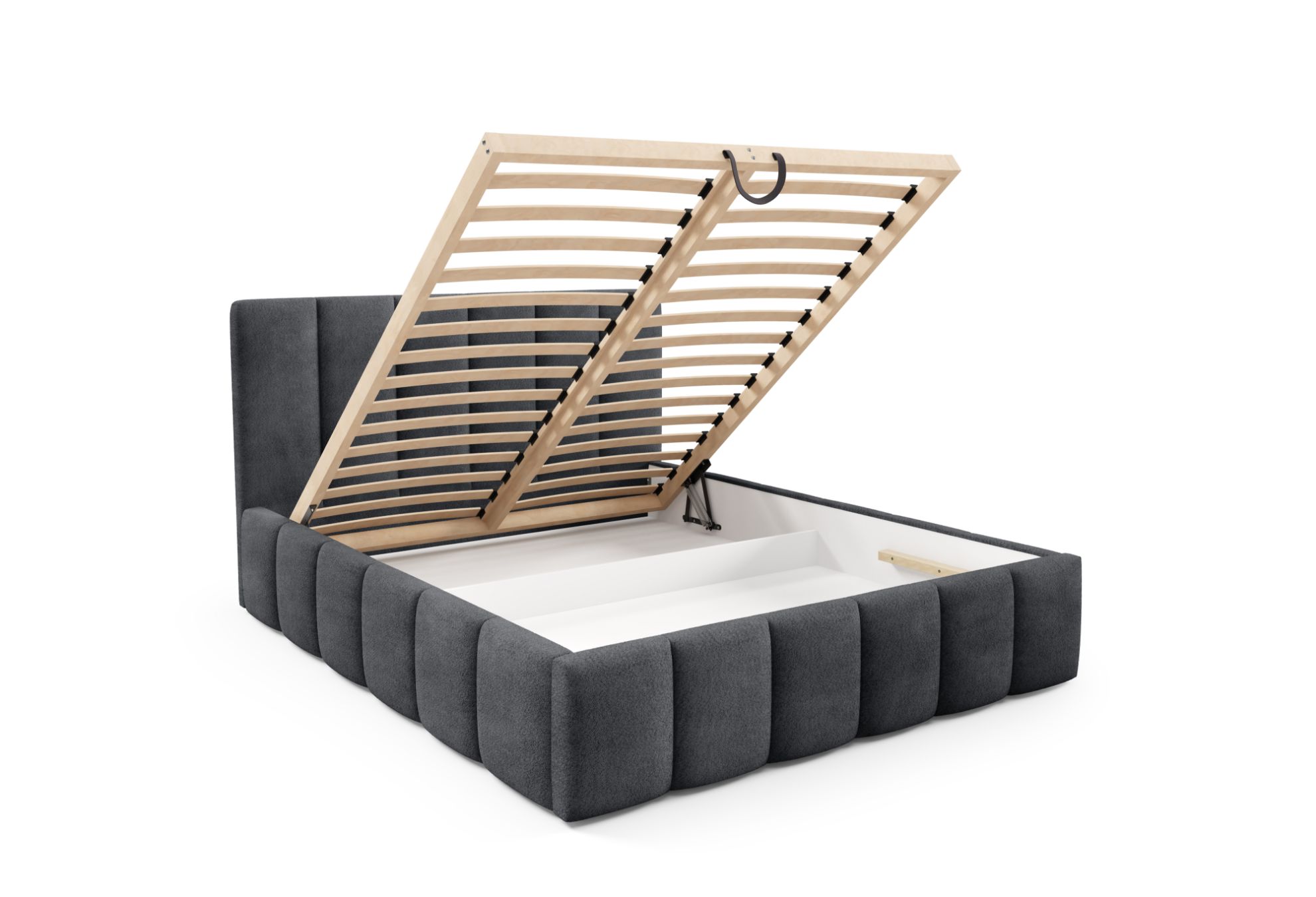 Łóżko tapicerowane Krima 140x200 w tkaninie Coral 80 w ciemnoszarym kolorze to elegancka i nowoczesna propozycja do sypialni. Miękka tapicerka Coral 80 w głębokim odcieniu ciemnej szarości nadaje wnętrzu wyrafinowany, stylowy i przytulny charakter, doskonale komponując się zarówno z jasnymi, jak i kontrastowymi aranżacjami.