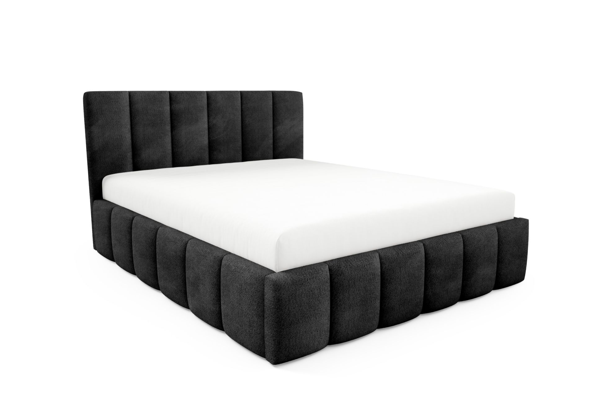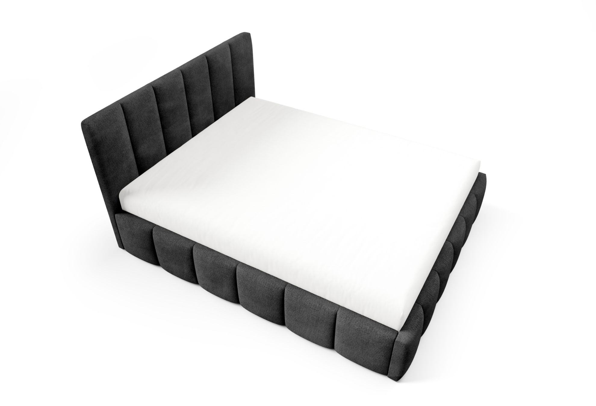 Łóżko tapicerowane Krima 160x200 w tkaninie Coral 60 w grafitowym kolorze to nowoczesna i elegancka propozycja do sypialni. Miękka tapicerka Coral 60 w głębokim grafitowym odcieniu nadaje wnętrzu wyrafinowany, stylowy i przytulny charakter, doskonale komponując się zarówno z jasnymi, jak i kontrastowymi aranżacjami.