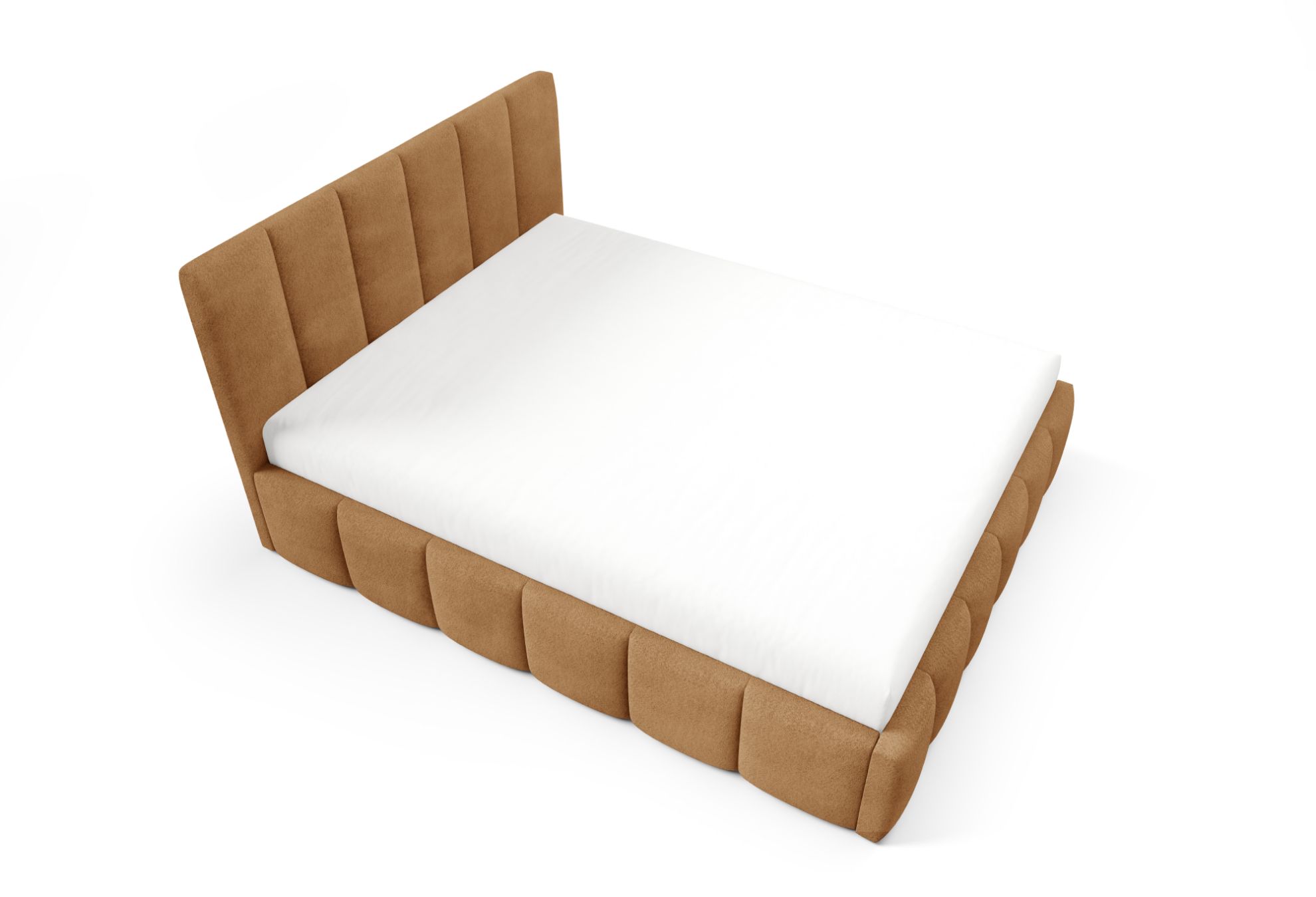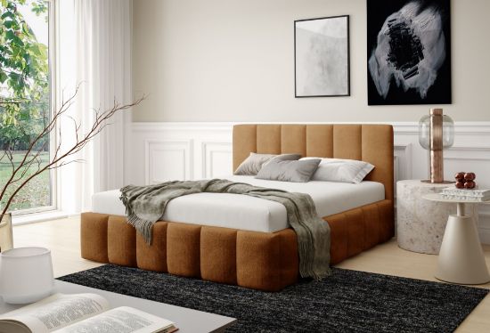 Łóżko tapicerowane Krima 160x200 w tkaninie Coral 35 w rudym kolorze to wyrazista i komfortowa propozycja do sypialni. Miękka tapicerka Coral 35 w ciepłym, rudym odcieniu nadaje wnętrzu przytulny i elegancki charakter, doskonale komponując się zarówno z jasnymi, jak i ciemniejszymi aranżacjami.