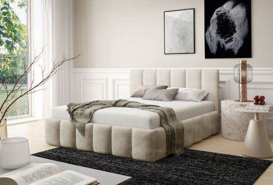 Łóżko tapicerowane Krima 180x200 w tkaninie Coral 15 w kremowym kolorze to elegancka i przytulna propozycja do sypialni. Miękka tapicerka Coral 15 w subtelnym kremowym odcieniu nadaje wnętrzu jasny, harmonijny i komfortowy charakter, doskonale komponując się zarówno z jasnymi, jak i ciemniejszymi aranżacjami.