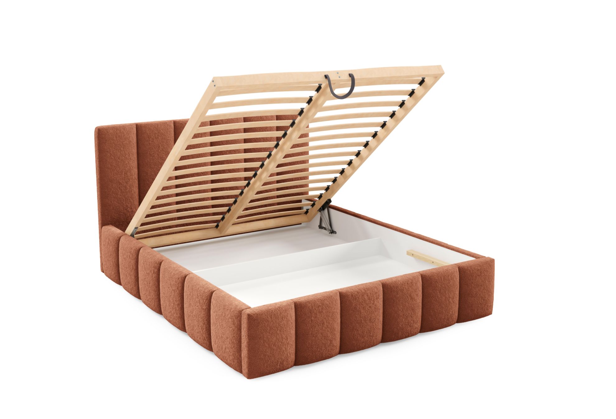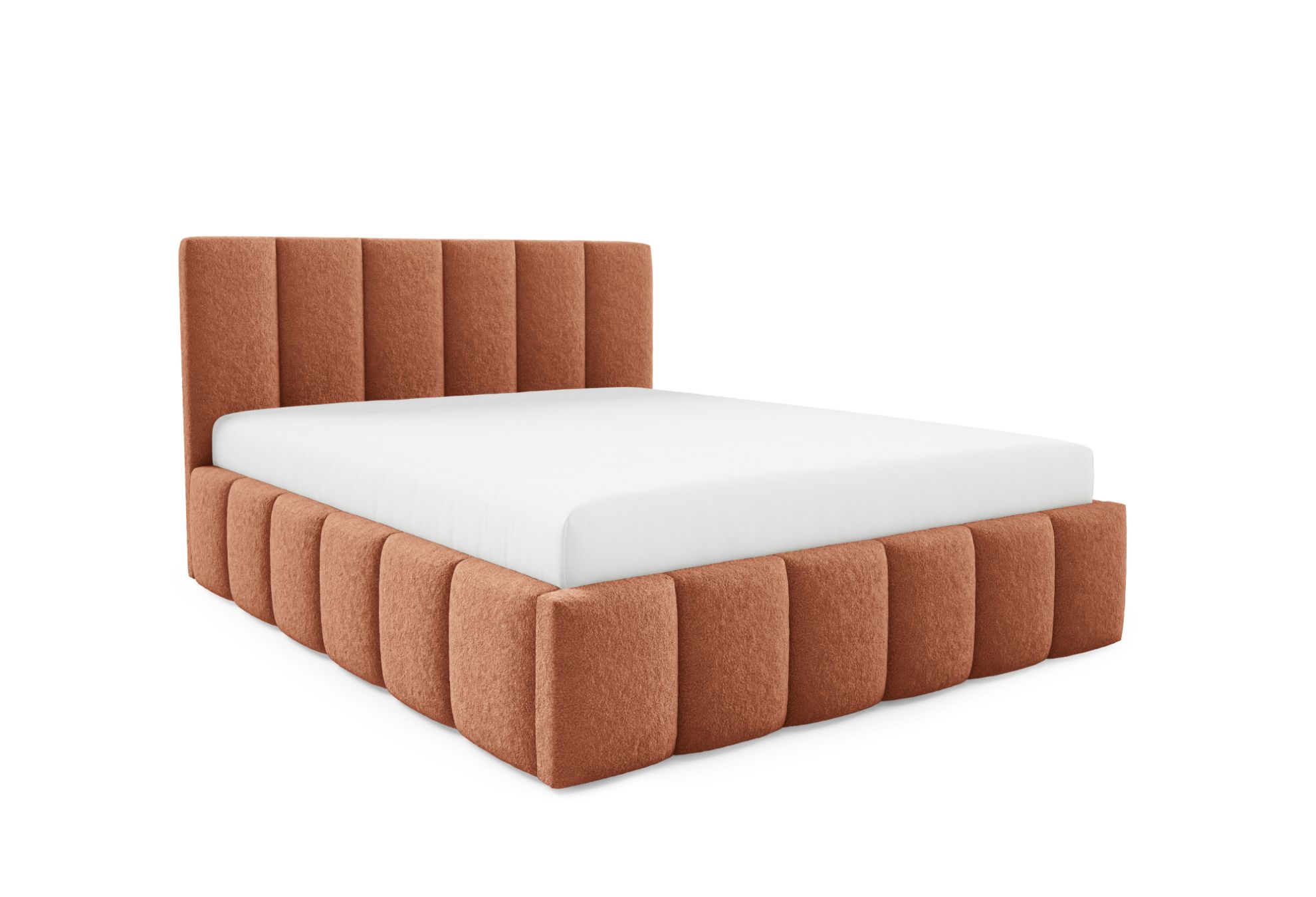 Łóżko tapicerowane Krima 180x200 w tkaninie Lambi 14 w pomarańczowym kolorze to wyrazista i nowoczesna propozycja do sypialni. Tapicerka Lambi 14 w intensywnym pomarańczowym odcieniu wprowadza do wnętrza energię, ciepło i unikalny charakter, świetnie komponując się zarówno z neutralnymi, jak i kontrastowymi aranżacjami.