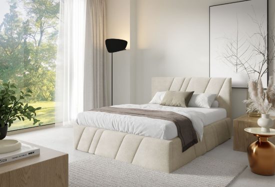 Łóżko tapicerowane Kseno 140x200 kremowy w tkaninie Coral 15 to nowoczesna i elegancka propozycja do sypialni. Tapicerka Coral 15 w subtelnym kremowym odcieniu wprowadza do wnętrza lekkość, świeżość i harmonijny charakter, doskonale komponując się zarówno z jasnymi, jak i kontrastowymi aranżacjami.