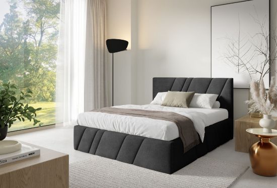 Łóżko tapicerowane Kseno 160x200 grafitowy w tkaninie Coral 60 to nowoczesna i elegancka propozycja do sypialni. Tapicerka Coral 60 w głębokim grafitowym odcieniu wprowadza do wnętrza elegancję, spokój i harmonijny charakter, doskonale komponując się zarówno z jasnymi, jak i kontrastowymi aranżacjami.