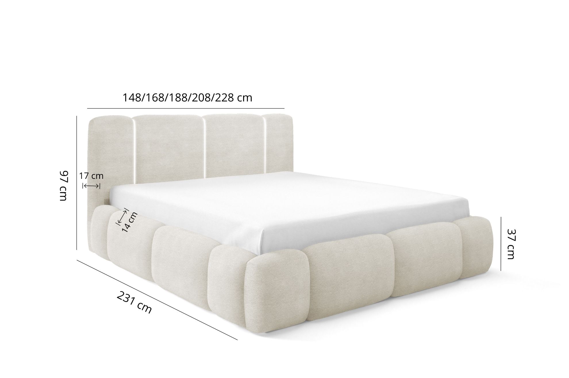 Model wyposażono w solidny metalowy stelaż z 34 listwami sprężynującymi, który zapewnia stabilne podparcie materaca. Siłowniki gazowe 1000N ułatwiają podnoszenie pojemnika na pościel, idealnego do przechowywania kołder, poduszek i innych tekstyliów.