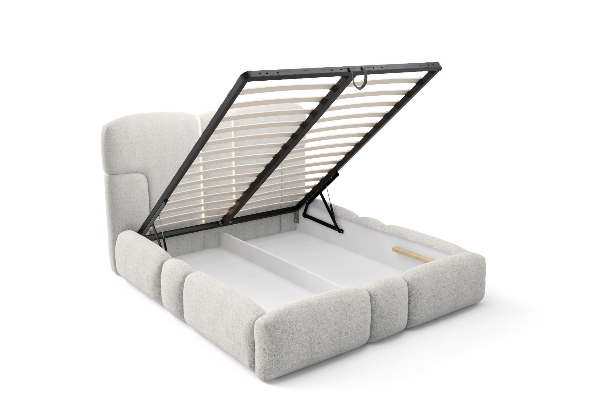 Łóżko nie posiada oświetlenia LED, co pozwala zachować czysty, minimalistyczny wygląd i spójną estetykę wnętrza. To połączenie funkcjonalności, komfortu i elegancji, dzięki któremu sypialnia staje się miejscem przytulnym, spokojnym i harmonijnym.