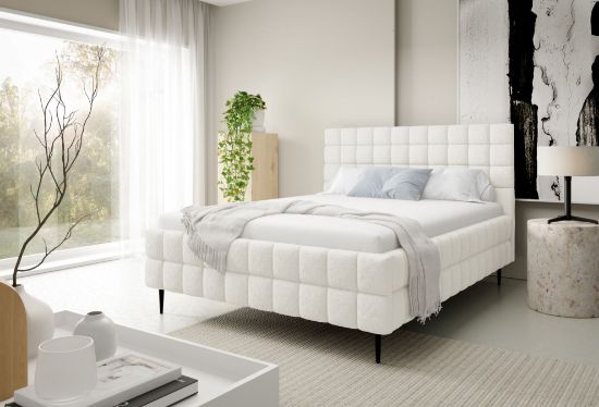 Łóżko tapicerowane Dopio 180x200 w tkaninie Lambi 07 w białym kolorze z nogami to elegancka i świeża propozycja do sypialni. Miękka tapicerka Lambi 07 w klasycznym białym odcieniu wprowadza do wnętrza lekkość, nowoczesny charakter i przytulną atmosferę, doskonale komponując się zarówno z jasnymi, jak i kontrastowymi aranżacjami.