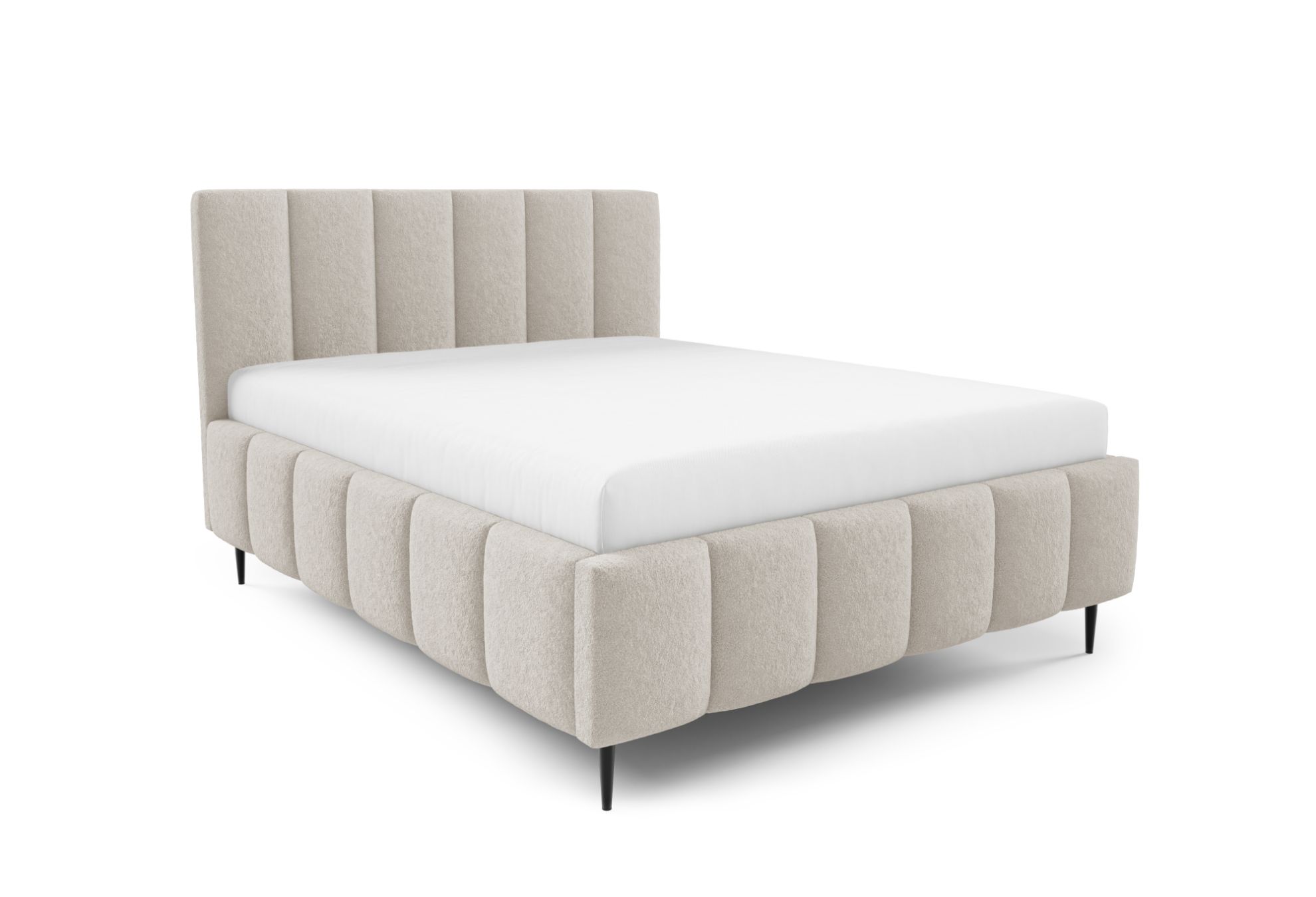 Dodatkowo czarne metalowe nóżki w standardzie i ozdobne przeszycia w tapicerce nadają meblowi nowoczesny i dopracowany wygląd. To połączenie wygody, funkcjonalności i stylowego designu, dzięki któremu sypialnia staje się przytulnym i stylowym miejscem codziennego wypoczynku.