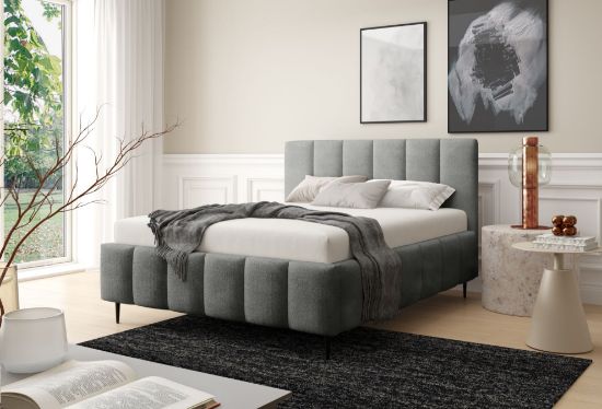 Dodatkowo czarne metalowe nóżki w standardzie i ozdobne przeszycia w tapicerce nadają meblowi nowoczesny i dopracowany wygląd. To połączenie wygody, funkcjonalności i stylowego designu, dzięki któremu sypialnia staje się przytulnym i stylowym miejscem codziennego wypoczynku.
