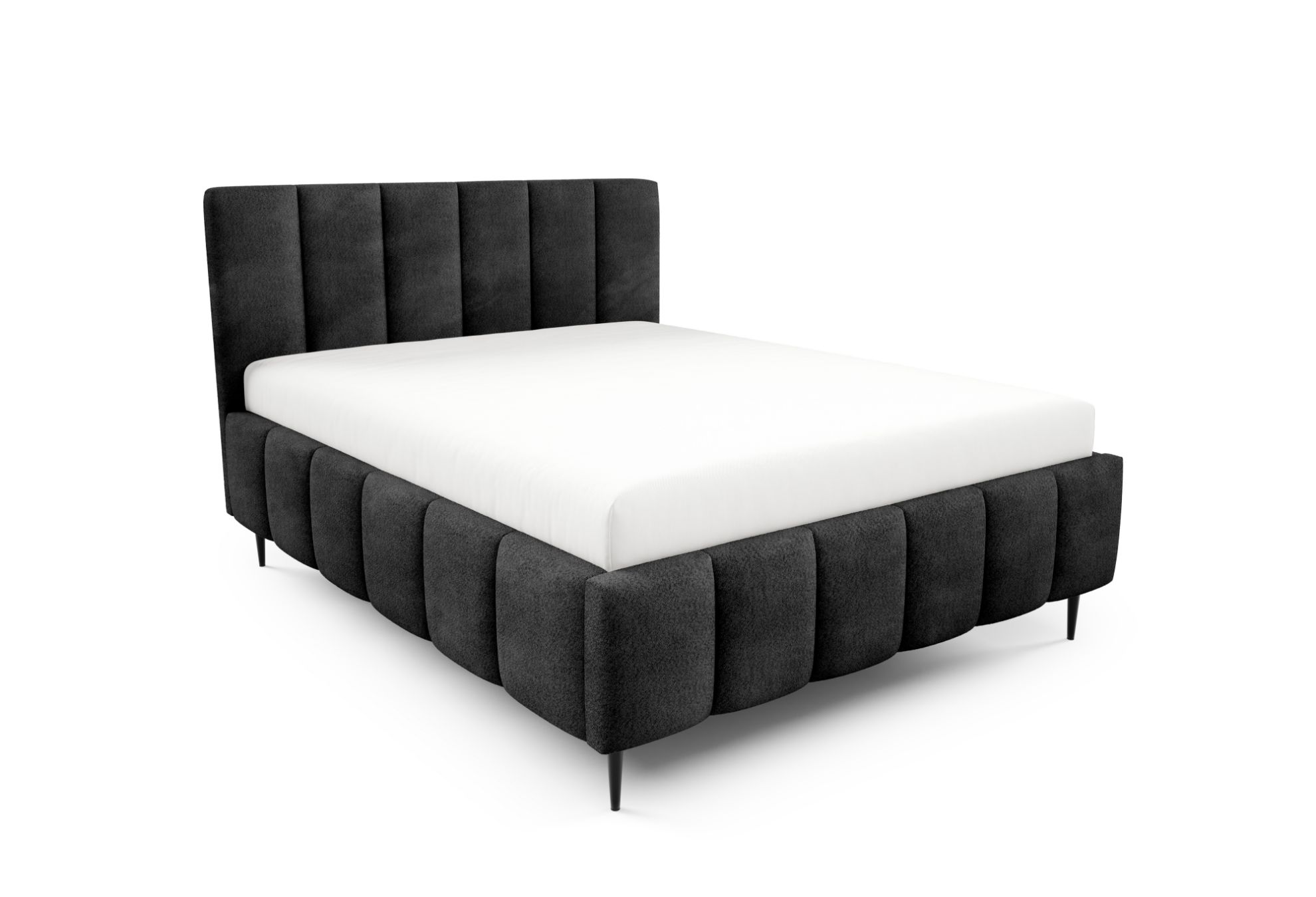 Dodatkowo czarne metalowe nóżki w standardzie i ozdobne przeszycia w tapicerce nadają meblowi nowoczesny i dopracowany wygląd. To połączenie wygody, funkcjonalności i stylowego designu, dzięki któremu sypialnia staje się przytulnym i stylowym miejscem codziennego wypoczynku.