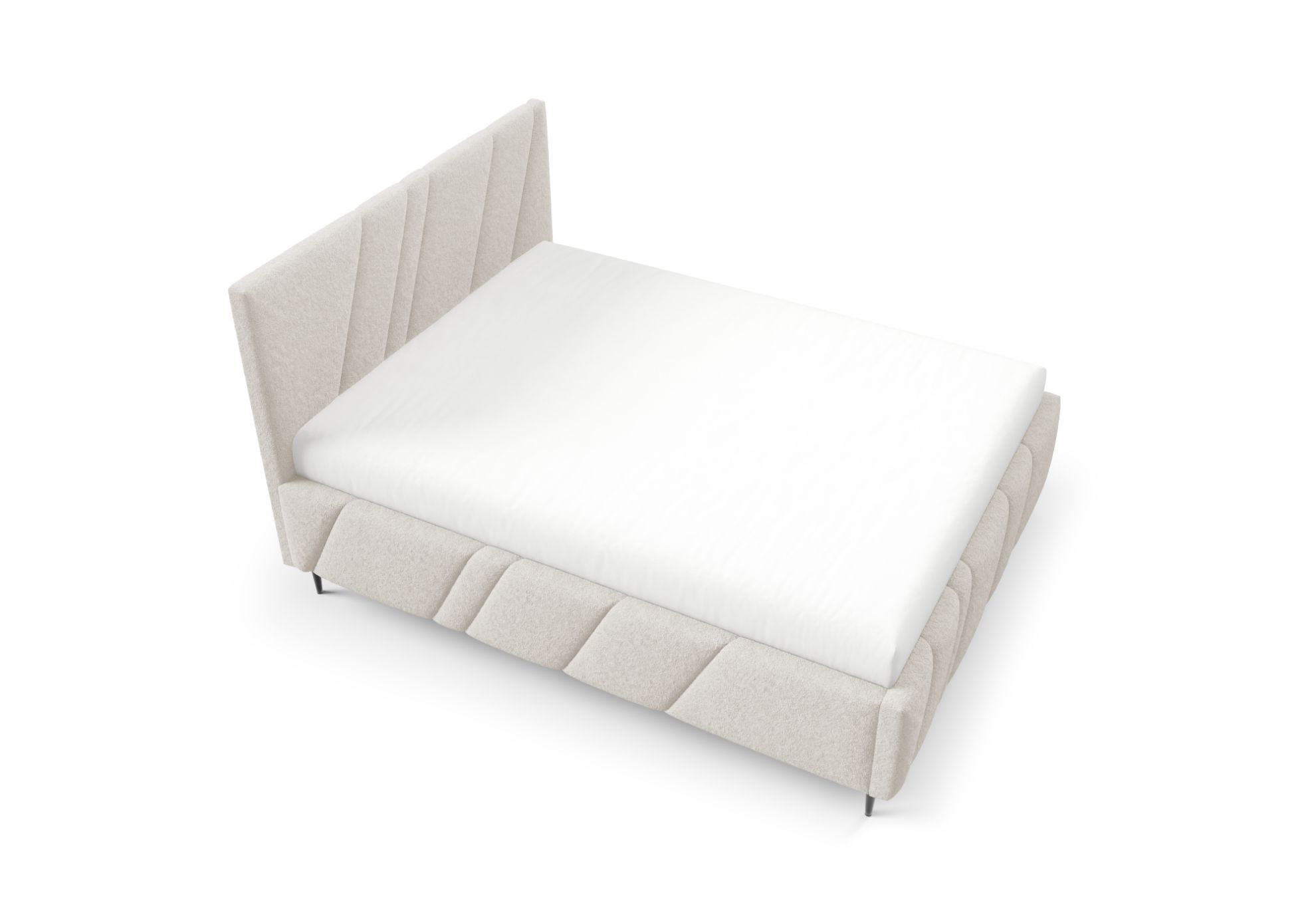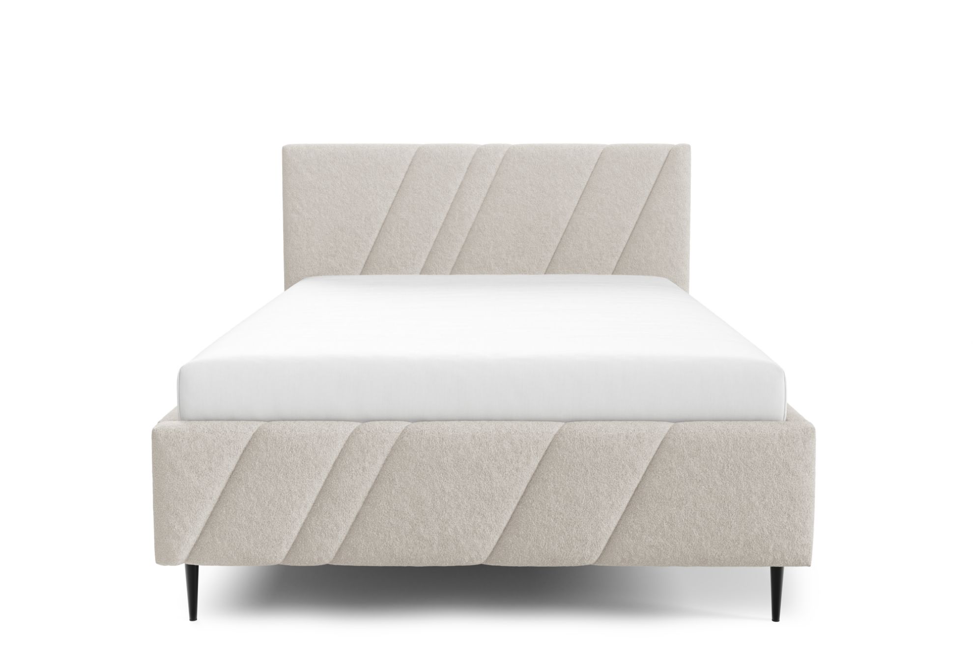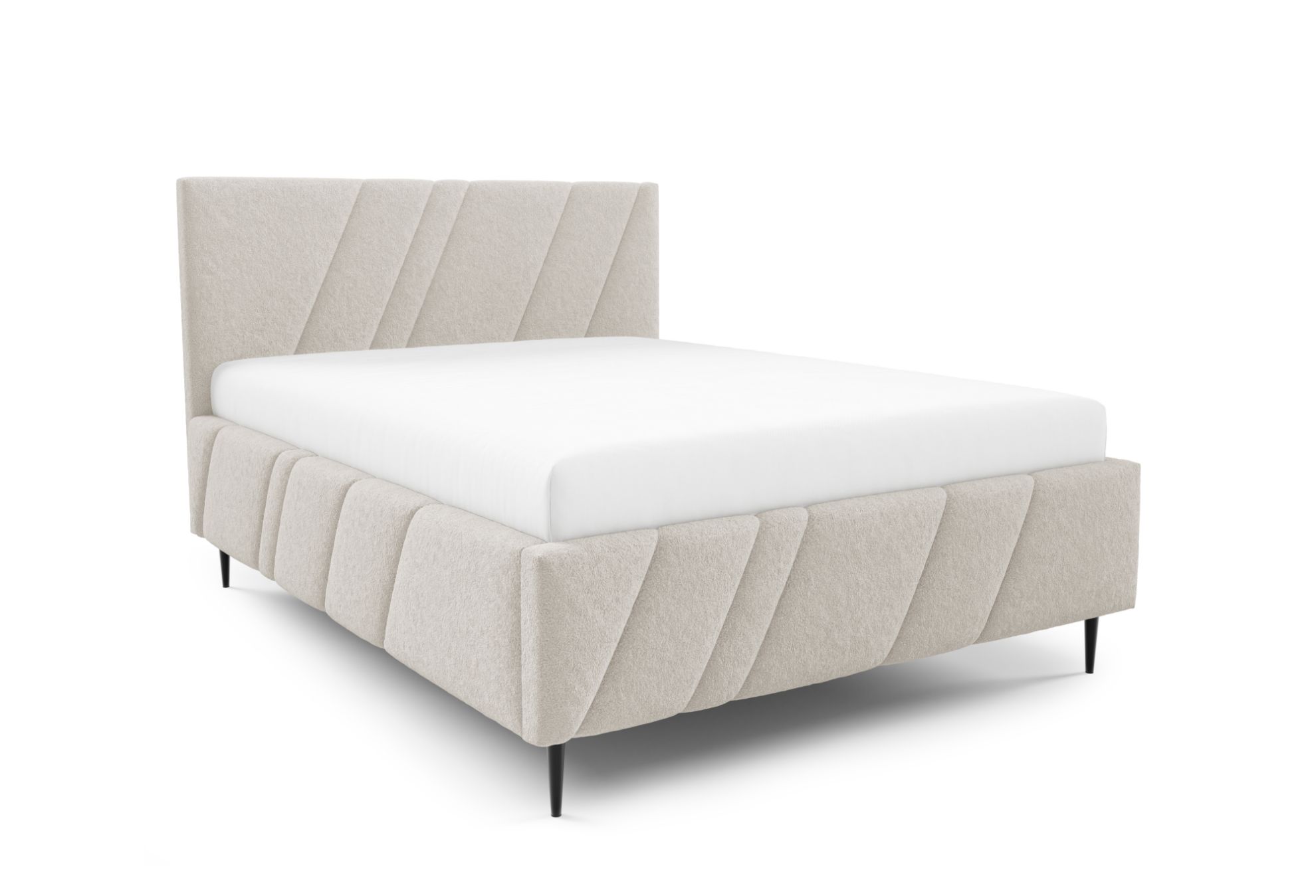 Dodatkowo czarne metalowe nóżki w standardzie nadają łóżku stabilność i nowoczesny charakter, a ozdobne przeszycia w tapicerce podkreślają dopracowany wygląd mebla. To połączenie wygody, funkcjonalności i stylowego designu, dzięki któremu sypialnia staje się przytulnym i eleganckim miejscem codziennego wypoczynku.