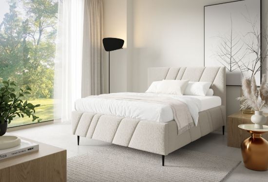 Łóżko tapicerowane z nogami Kseno 160x200 beżowy w tkaninie Lambi 05 to nowoczesna i elegancka propozycja do sypialni, łącząca komfort użytkowania z subtelnym stylem. Tapicerka Lambi 05 w delikatnym beżowym odcieniu wprowadza do wnętrza lekkość, ciepło i harmonijny charakter, doskonale komponując się zarówno z jasnymi, jak i kontrastowymi aranżacjami.