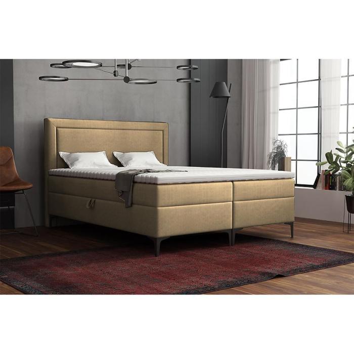 W standardzie łóżka jest średnio twardy materac kieszeniowy. Ozdobne zagłowie tworzy elegancki i współczesny design. Komfortowa powierzchnia spania dla dwóch osób wynosi 140x200 cm. Skrzynie jak i zagłowie wykonane są z płyty wiórowej laminowanej obitej tkaniną. Moduł posiada metalowe nóżki.