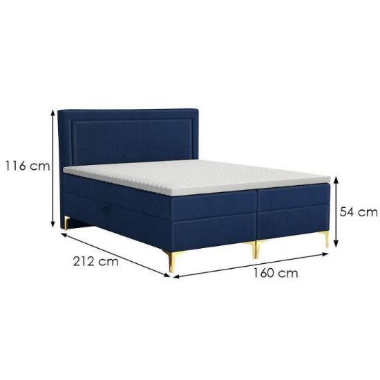 W standardzie łóżka jest średnio twardy materac kieszeniowy. Ozdobne zagłowie tworzy elegancki i współczesny design. Komfortowa powierzchnia spania dla dwóch osób wynosi 160x200 cm. Skrzynie jak i zagłowie wykonane są z płyty wiórowej laminowanej obitej tkaniną. Moduł posiada metalowe nóżki.