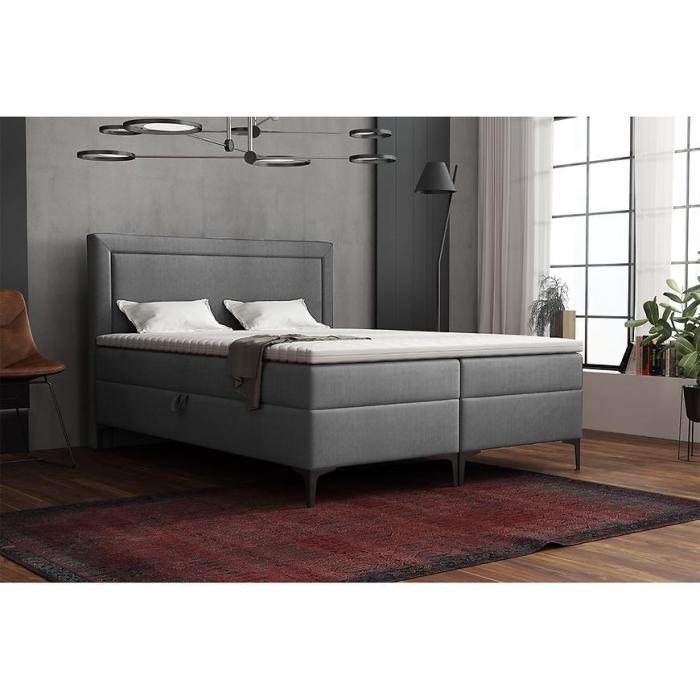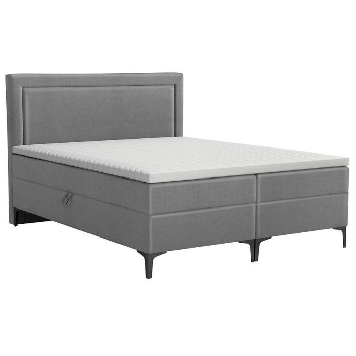 W standardzie łóżka jest średnio twardy materac kieszeniowy. Ozdobne zagłowie tworzy elegancki i współczesny design. Komfortowa powierzchnia spania dla dwóch osób wynosi 180x200 cm. Skrzynie jak i zagłowie wykonane są z płyty wiórowej laminowanej obitej tkaniną. Moduł posiada metalowe nóżki.