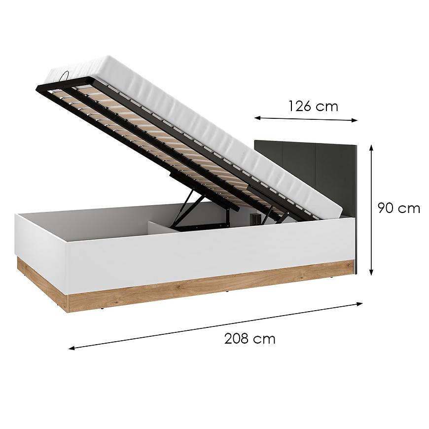 Łóżko Torino 120+Stelaż z Podnośnikiem 1201 biały/dąb castello/grafit