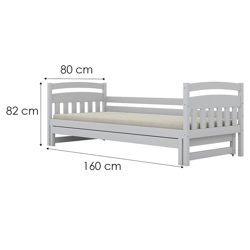 Wymiary 160x80 cm zapewniają komfortową powierzchnię spania dla jednej osoby, a dodatkowe wysuwane łóżko umieszczone pod konstrukcją pozwala szybko stworzyć drugie miejsce do spania. To idealne rozwiązanie do mniejszych pomieszczeń, gdzie liczy się maksymalne wykorzystanie przestrzeni.