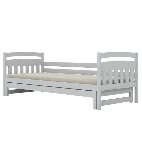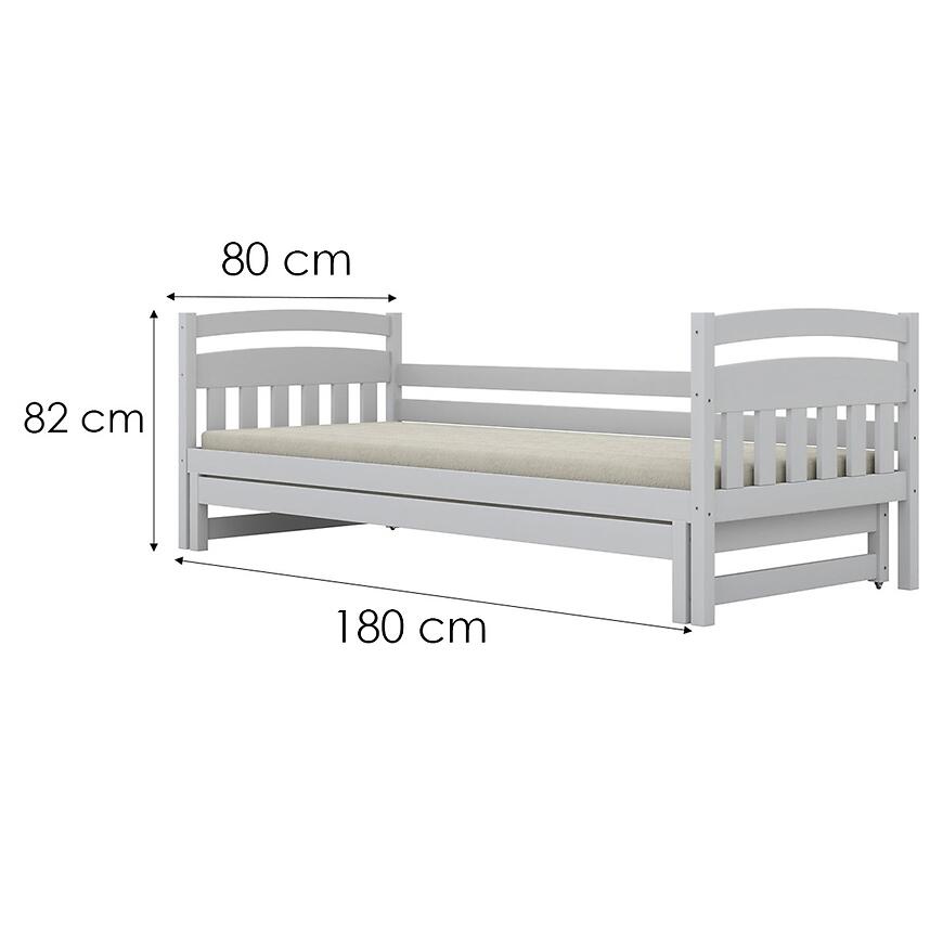 Wymiary 180x80 cm zapewniają komfortową powierzchnię spania dla jednej osoby, a dodatkowe wysuwane łóżko umieszczone pod konstrukcją pozwala szybko stworzyć drugie miejsce do spania. To idealne rozwiązanie do mniejszych pomieszczeń, gdzie liczy się maksymalne wykorzystanie przestrzeni.