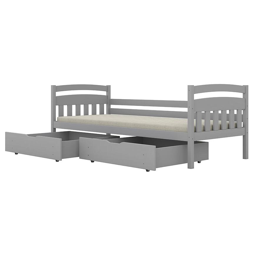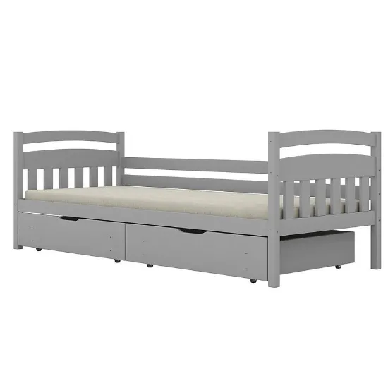 Łóżko Tosia w szarym kolorze to propozycja dla rodziców poszukujących połączenia wygody, funkcjonalności i estetyki w pokoju dziecięcym. Wykonane z trwałego drewna, łóżko wyróżnia się solidną konstrukcją i nowoczesnym designem, który łatwo dopasować do różnych aranżacji wnętrz. Matowe wykończenie i starannie dobrane wybarwienie szare nadają meblowi elegancki, spokojny charakter, który harmonizuje z każdą paletą kolorystyczną w pokoju dziecka.