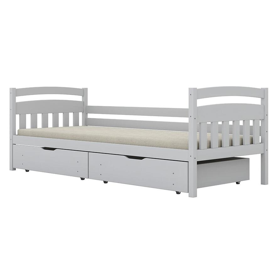 Łóżko Tosia zostało wyposażone w dwa pojemne schowki na pościel, które ułatwiają utrzymanie porządku w pokoju. Dzięki dużym szufladom można wygodnie przechowywać pościel, zabawki czy ubrania, co znacząco zwiększa funkcjonalność mebla. Białe łóżko z pojemnikiem doskonale sprawdza się w mniejszych pokojach, gdzie liczy się każdy centymetr przestrzeni.