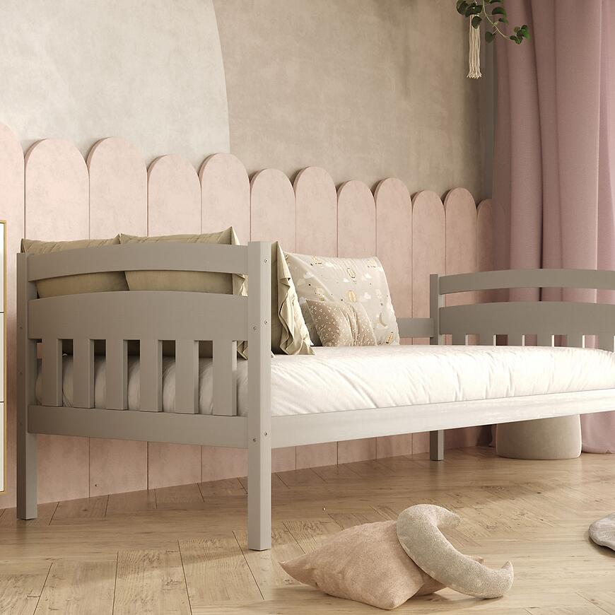 Łóżko Tosia standard w kolorze szarym to funkcjonalne i estetyczne łóżko drewniane do sypialni, pokoju dziecięcego lub młodzieżowego. Wykonane z drewna, łączy trwałość konstrukcji z nowoczesnym wyglądem. Szare wybarwienie w matowym wykończeniu nadaje wnętrzu elegancji i doskonale komponuje się z aranżacjami minimalistycznymi, skandynawskimi oraz loftowymi.