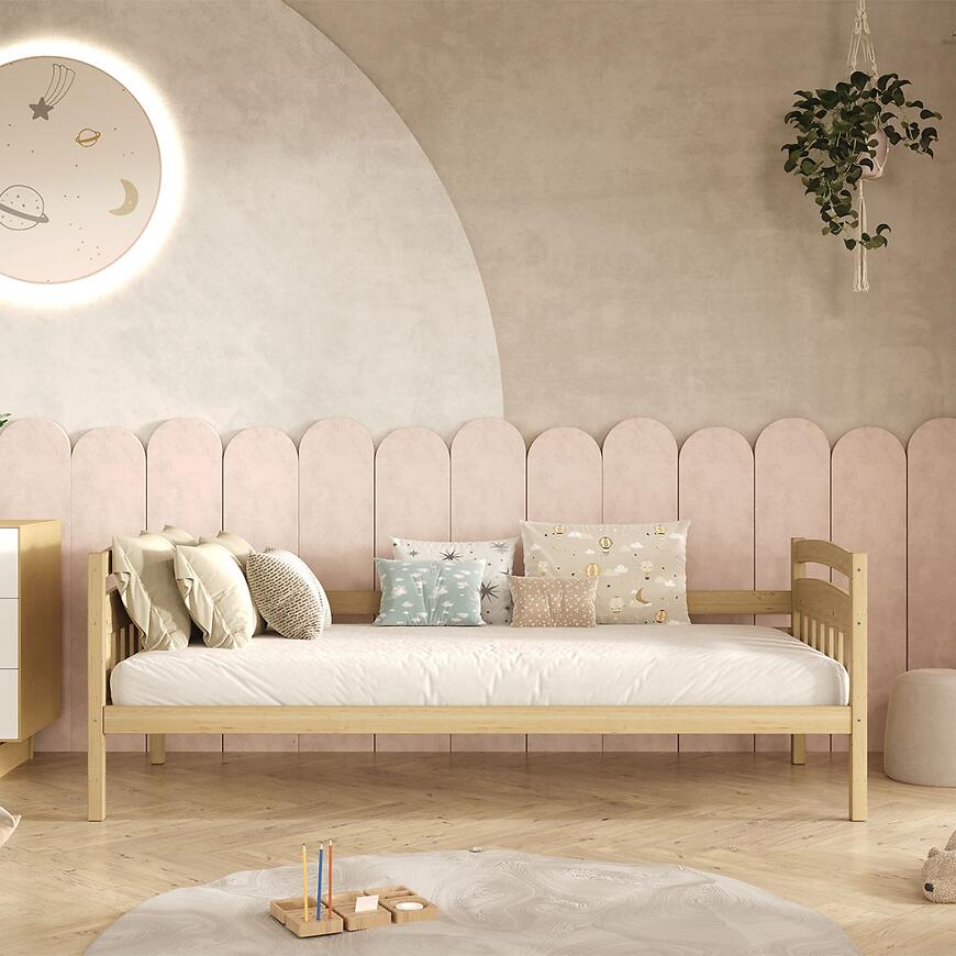Łóżko Tosia standard naturalne, nielakierowane to propozycja dla osób poszukujących drewnianego łóżka 200x80 o prostej formie i solidnym wykonaniu. Matowa powierzchnia, jasne wybarwienie oraz stabilna konstrukcja zapewniają wygodny sen i estetyczny wygląd wnętrza przez długie lata użytkowania.