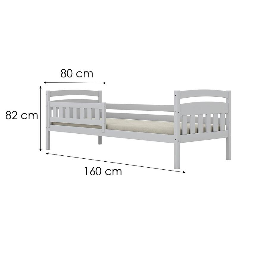 Powierzchnia spania wynosi 160x80 cm, co odpowiada rozmiarowi materaca 160x80 cm (materac nie jest w komplecie). Stelaż 160x80 cm znajduje się w zestawie, dzięki czemu łóżko jest gotowe do uzupełnienia o wybrany materac.