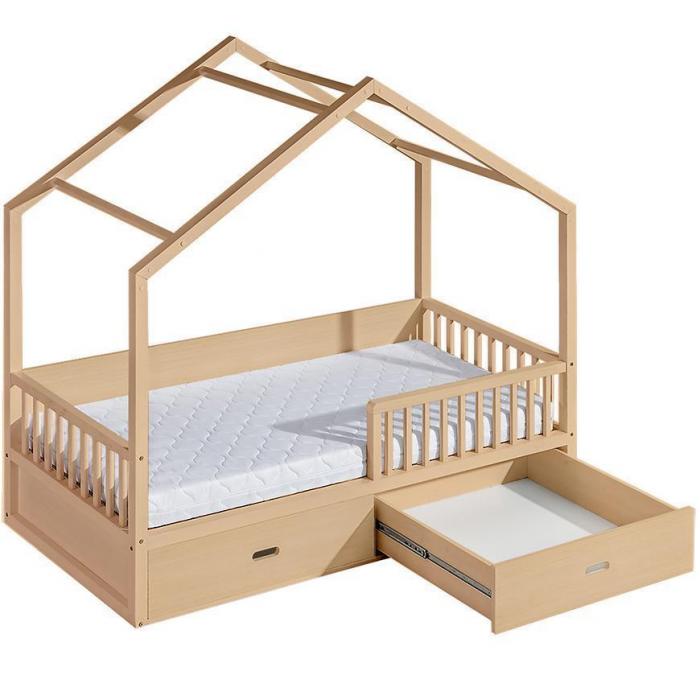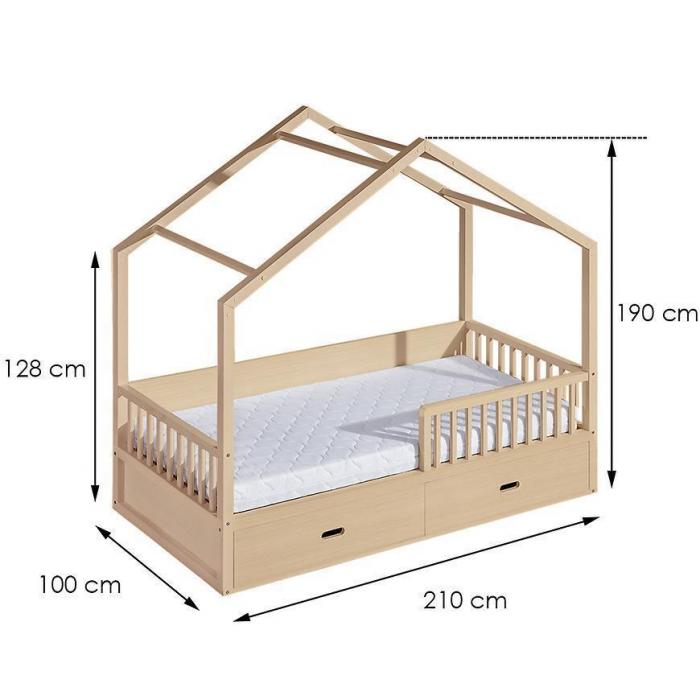 Łóżeczko do pokoju dziecka wcale nie musi być zwykłym, prostym łóżeczkiem. Ciekawa i oryginalna konstrukcja łóżeczka Wiktor w kształcie domu z pewnością zadowoli Twoje dziecko i zrobi wrażenie! Łóżeczko wykonane z sosny naturalnej, którą śmiało można przemalować na wybrany kolor. Posiada dodatkowe miejsce do przechowywania np. pościeli czy zabawek (dwie szuflady). Niski szczebelkowy płotek zapewnia dodatkowe bezpieczeństwo. Całość może być zaaranżowana w dowolny sposób, a z pewnością świetnie będzie się prezentować.