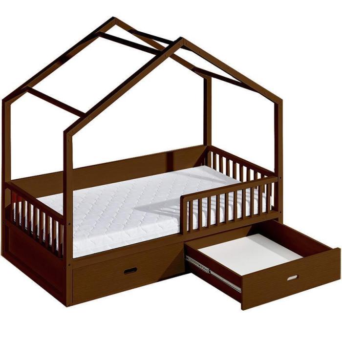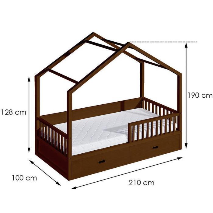 Łóżeczko do pokoju dziecka wcale nie musi być zwykłym, prostym łóżeczkiem. Ciekawa i oryginalna konstrukcja łóżeczka Wiktor w kształcie domu z pewnością zadowoli Twoje dziecko i zrobi wrażenie! Łóżeczko wykonane z drzewa sosnowego. Posiada dodatkowe miejsce do przechowywania np. pościeli czy zabawek (dwie szuflady). Niski szczebelkowy płotek zapewnia dodatkowe bezpieczeństwo. Całość może być zaaranżowana w dowolny sposób, a z pewnością świetnie będzie się prezentować.