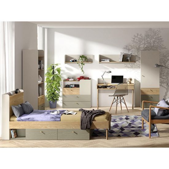 Łóżko Yuki 13 P/L to idealne rozwiązanie dla osób, które cenią sobie nowoczesny design połączony z funkcjonalnością i wygodą. Jego subtelny, jasno drewnopodobny kolor nadaje wnętrzu ciepła i naturalności, doskonale wpisując się w trendy minimalistyczne oraz skandynawskie. Dzięki takiej stylistyce łóżko z łatwością wkomponuje się zarówno w pokój młodzieżowy, sypialnię, jak i nowoczesne mieszkanie o przytulnym charakterze.