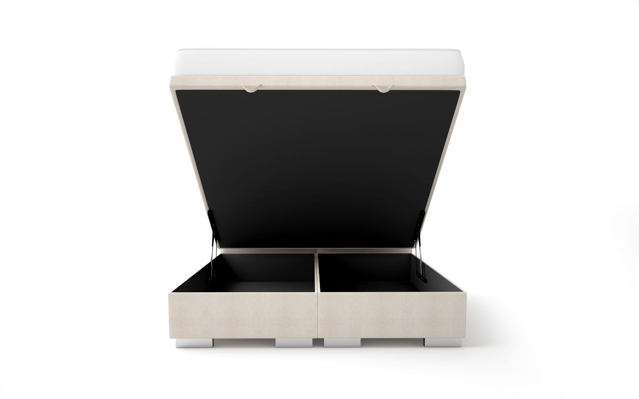 Główną cechą łóżka Negra są jego dwa pojemniki na pościel, które umożliwiają łatwe przechowywanie pościeli, koców czy poduszek, pomagając w utrzymaniu porządku w sypialni. Pojemniki te są wyposażone w automaty wspomagające podnoszenie, co sprawia, że dostęp do schowków jest niezwykle prosty i wygodny. Stelaż podnoszony od przodu umożliwia szybkie i bezproblemowe korzystanie z pojemników, co jest idealnym rozwiązaniem dla osób ceniących sobie funkcjonalność i praktyczność w codziennym życiu.