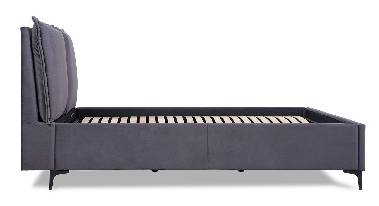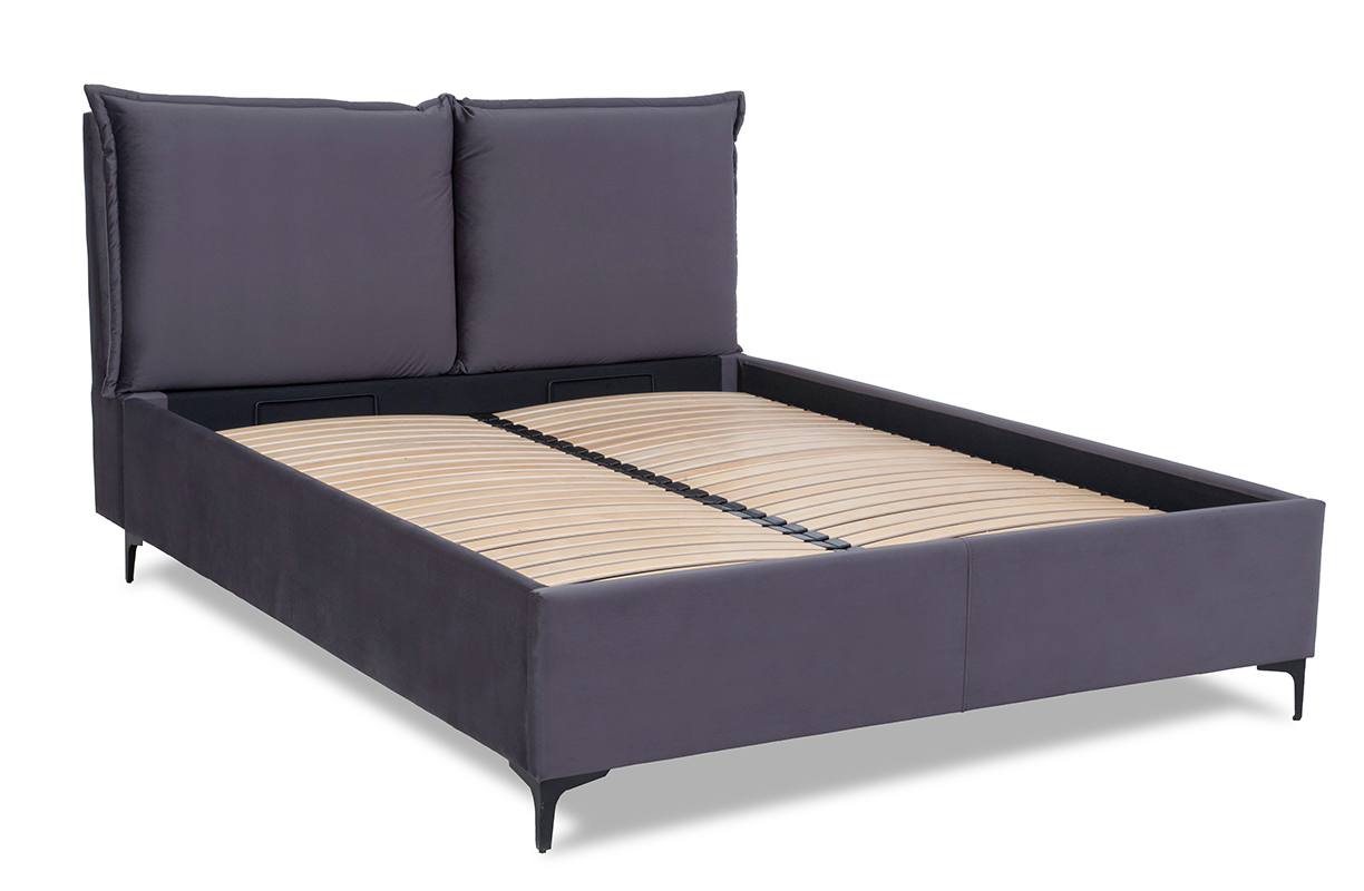 Czarne, wysokie nóżki wykonane z metalu podkreślają nowoczesny charakter łóżka Sevilla, dodając mu lekkości i elegancji. Metalowe nóżki zapewniają stabilność oraz ułatwiają utrzymanie czystości pod łóżkiem, co jest dodatkowym atutem w codziennym użytkowaniu.