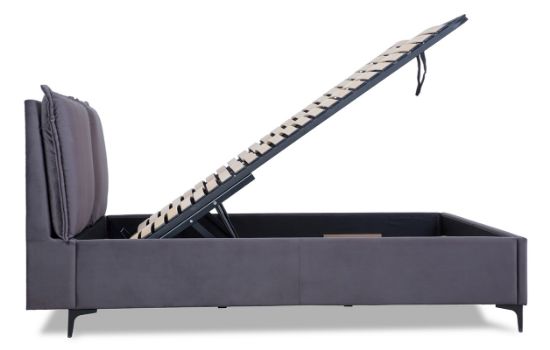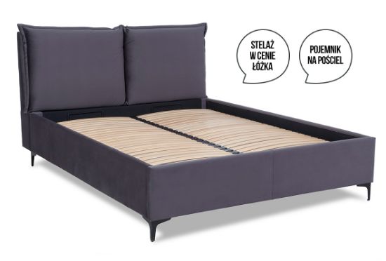 Funkcjonalność łóżka Sevilla podnosi także pojemnik na pościel, który jest niezwykle praktycznym rozwiązaniem. Pojemniki otwierane od przodu z automatem wspomagającym podnoszenie pozwalają na łatwy dostęp do przechowywanej pościeli, koców czy poduszek. To rozwiązanie ułatwia utrzymanie porządku w sypialni i sprawia, że łóżko jest jeszcze bardziej funkcjonalne.