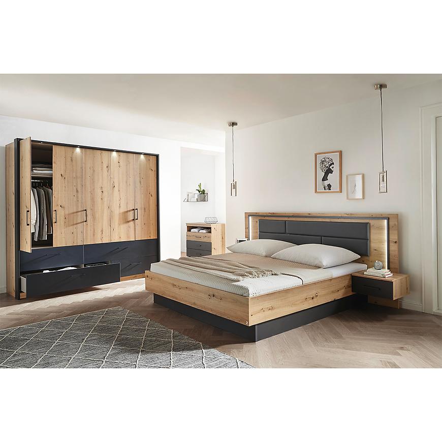 Jedną z głównych cech tego łóżka jest jego wybarwienie. Kolor dąb artisan w połączeniu ze szarym tworzy elegancką i harmonijną kombinację, która pasuje do różnych stylów i aranżacji wnętrz. Ten unikalny motyw kolorystyczny dodaje łóżku wyjątkowego charakteru, podkreślając jego nowoczesny design.