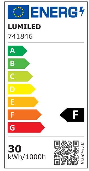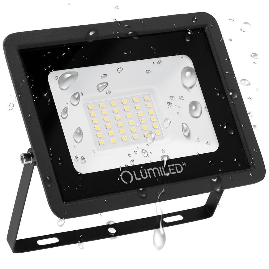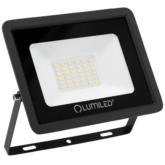 Naświetlacz LED Lumiled ZUNA 30W 4000K to mocne i trwałe oświetlenie zewnętrzne. Obudowa z aluminium w kolorze czarnym, zintegrowane 36 diod SMD LED emitujących neutralne światło. Możliwość regulacji kierunku oświetlenia pozwala precyzyjnie skierować światło tam, gdzie potrzeba. Zasilanie 230V 50 Hz, klasa szczelności IP65, klasa ochronności II oraz efektywności energetycznej F. Wymiary: szerokość 16 cm, wysokość 12 cm.