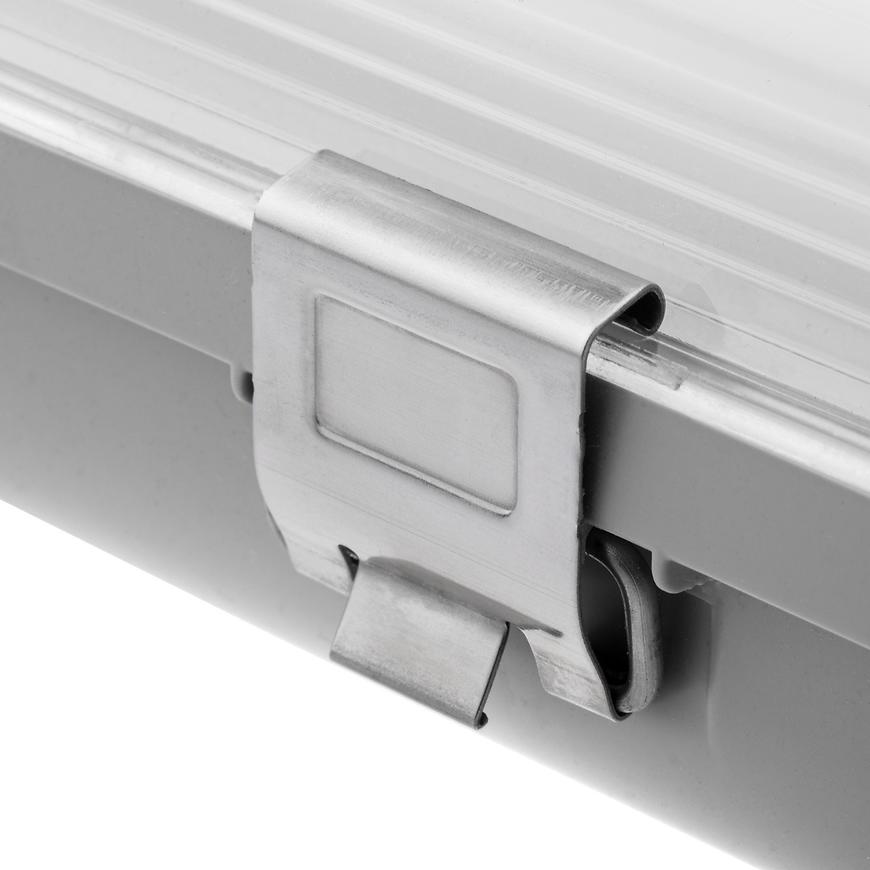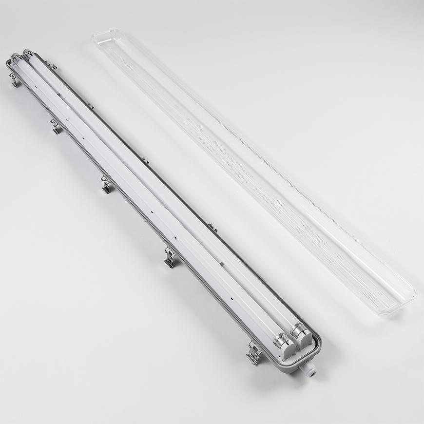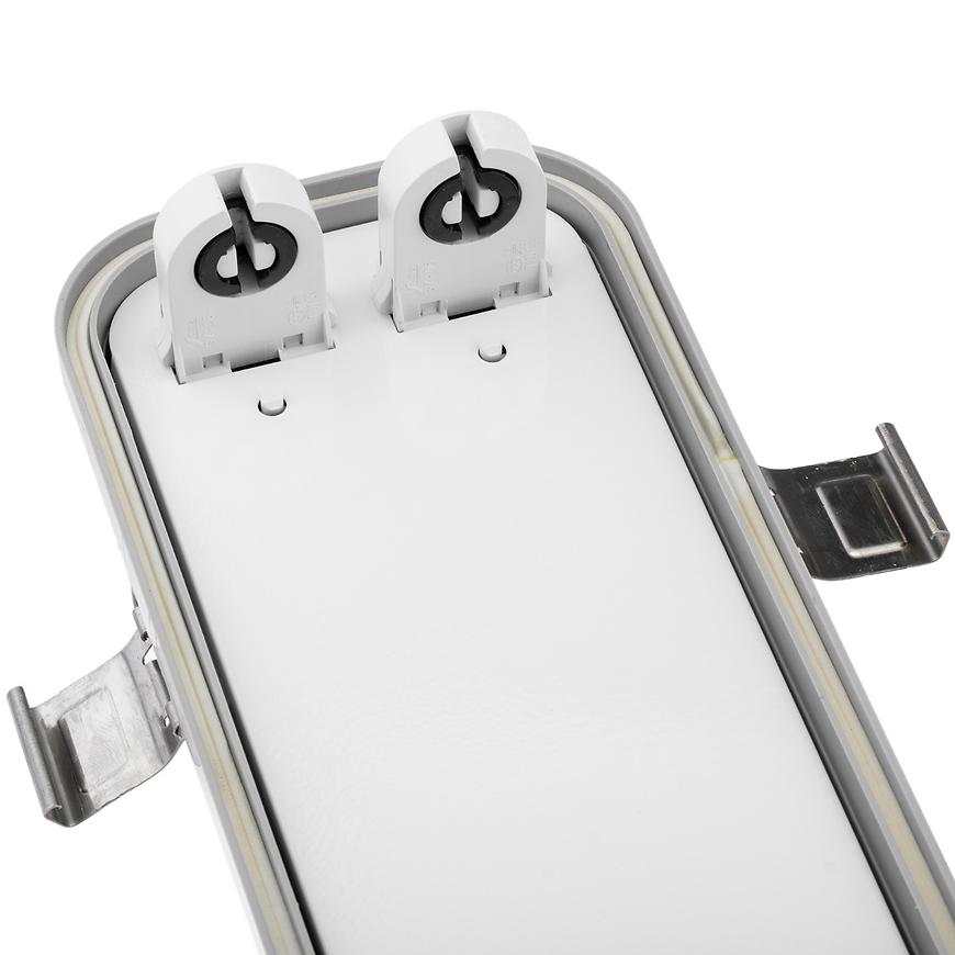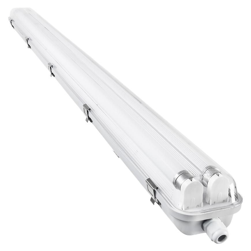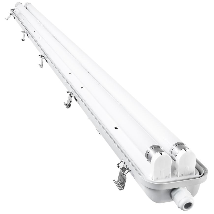 Oprawa hermetyczna Lumiled T8 do LED 2×120 cm to trwałe i szczelne rozwiązanie do pomieszczeń o podwyższonej wilgotności. Wykonana z ABS, metalu i poliwęglanu w kolorze białym, przeznaczona na świetlówki/LED T8 z gwintem G13. Zasilanie 230 V, klasa szczelności IP65, nieprzyciemnialna, stała konstrukcja bez możliwości zmiany kierunku światła.
