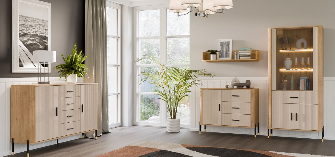 Dzięki różnorodności brył, kolekcja Dante umożliwia aranżację wielu pomieszczeń w spójnym stylu. Pojemne komody, witryny, stoliki czy szafy pozwalają na praktyczne przechowywanie i elegancką ekspozycję dekoracji. Cichy domyk, solidne wykonanie oraz wybór uchwytów sprawiają, że Dante to kolekcja, która łączy wygodę codziennego użytkowania z wyjątkowym stylem.